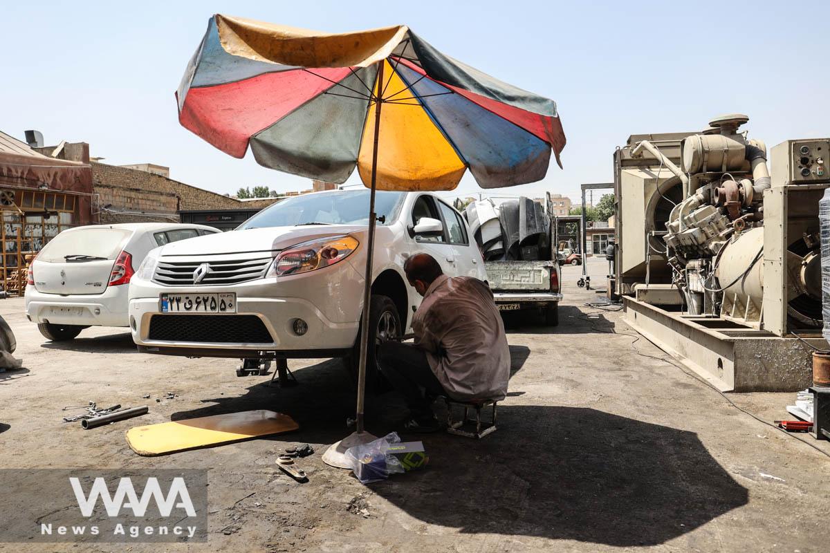A carpenter works following a power outage at a carpentry workshop in Tehran, Iran, June 1, 2025. (Majid Asgaripour/WANA)
