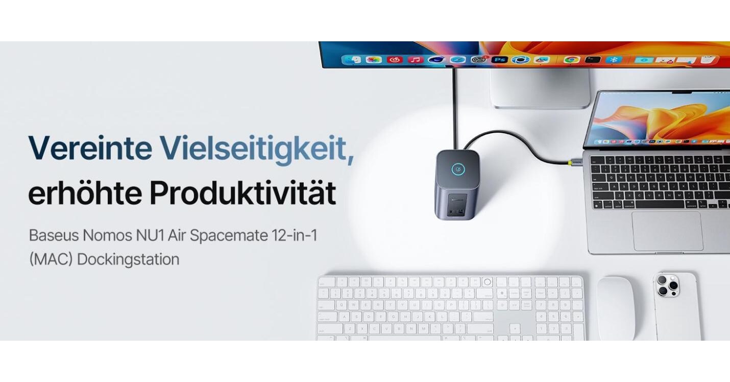 SHENZHEN, China, Oct. 27, 2025 /PRNewswire/ — Baseus, a leading name in consumer electronics, has unveiled its latest innovation: the Baseus Nomos NU1 Air Spacemate 12-in-1 (MAC) Docking Station. Elegantly designed in Space Grey, this versatile product is tailored for home, office, and mobile use.