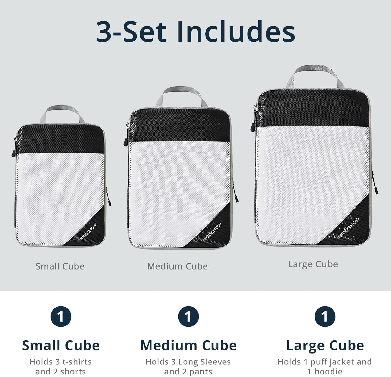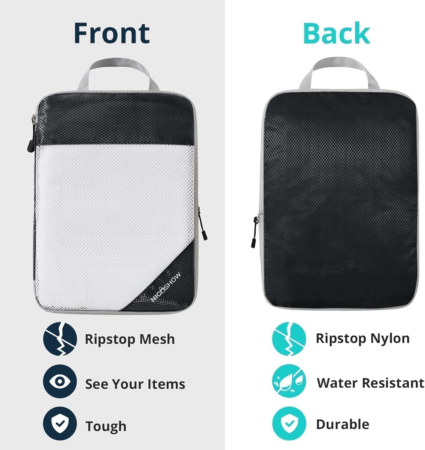Maximize Luggage Space: With NICOSHOW compression packing cubes, you can pack smarter and fit more into your luggage. Our two-zipper system packing cube can compress clothes and save up to 60% of space