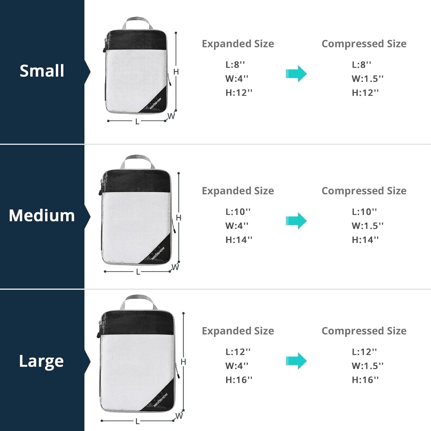 Organize Like a Pro: These 6-set travel packing organizers contain 6 compressible packing cubes in 3 different sizes. These travel cubes also make it easy to keep luggage organized and tidy. Say goodbye to messy luggage and hello to anti-stress packing