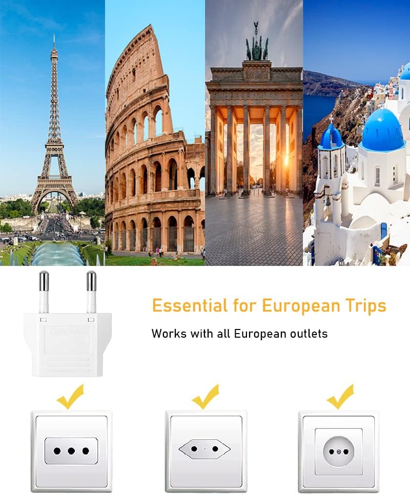 ✈️Essential for European Trips: Travel from United States, America, China, AU to ALL of Europe (NOT for UK) with these white power plug outlet adapters.