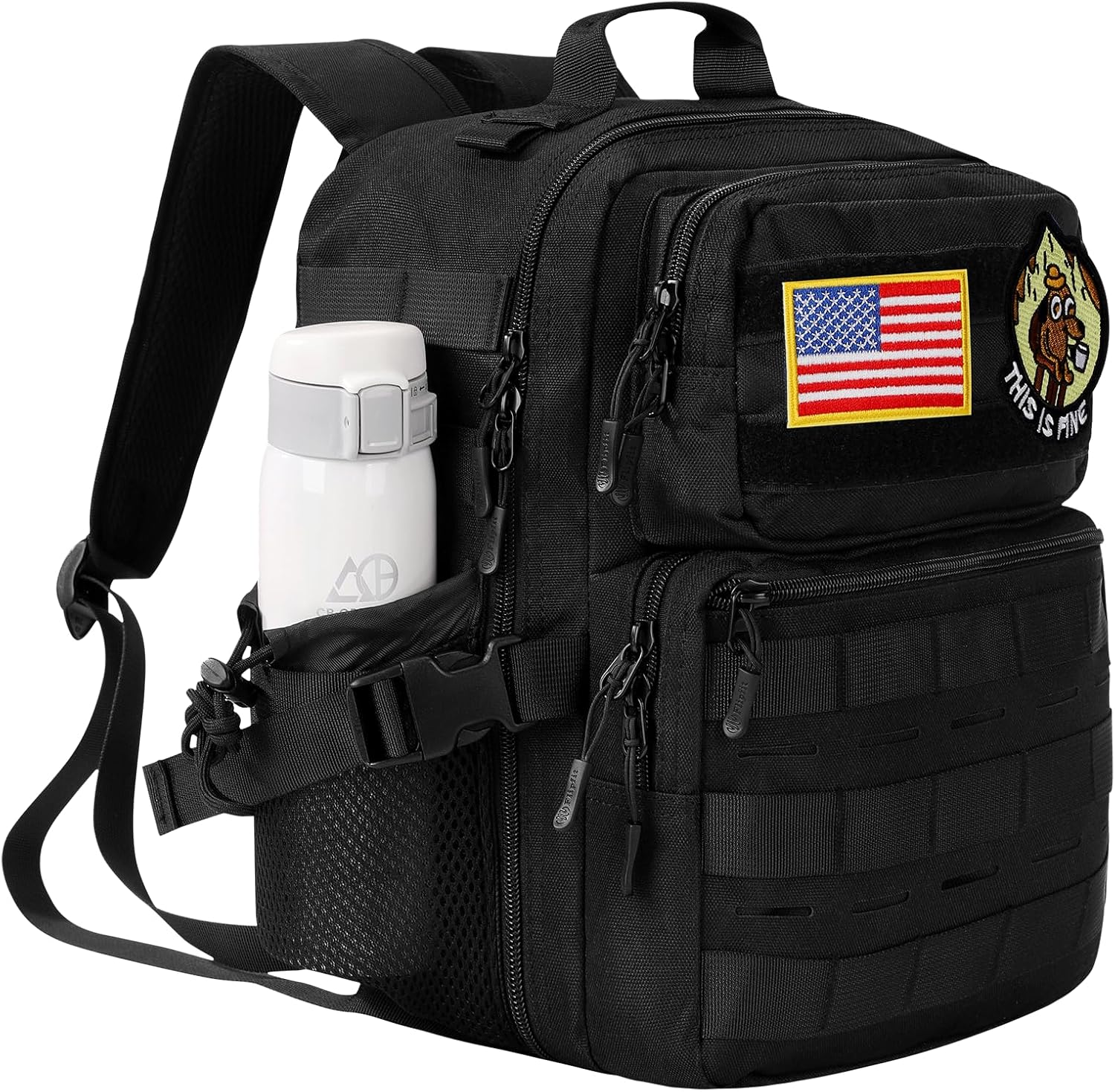 Customers find the tactical backpack spacious and well-made, with one noting its amazing zipper quality and another mentioning its multiple compartments with zippers. The backpack is durable and versatile, being suitable for gym use and day trips, while also receiving positive feedback for its cute design. They appreciate the included patches, with one customer highlighting the included Velcro patches as a nice surprise. The shoulder straps receive mixed reviews, with one customer finding them awkward ergonomically.