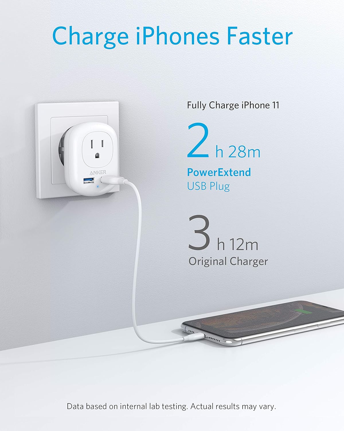 Charge Phones Faster: Use either of the 12W USB ports to give your iPhone 11 a full charge in just 2.5 hours—that’s a full 40 minutes faster than with your original charger.