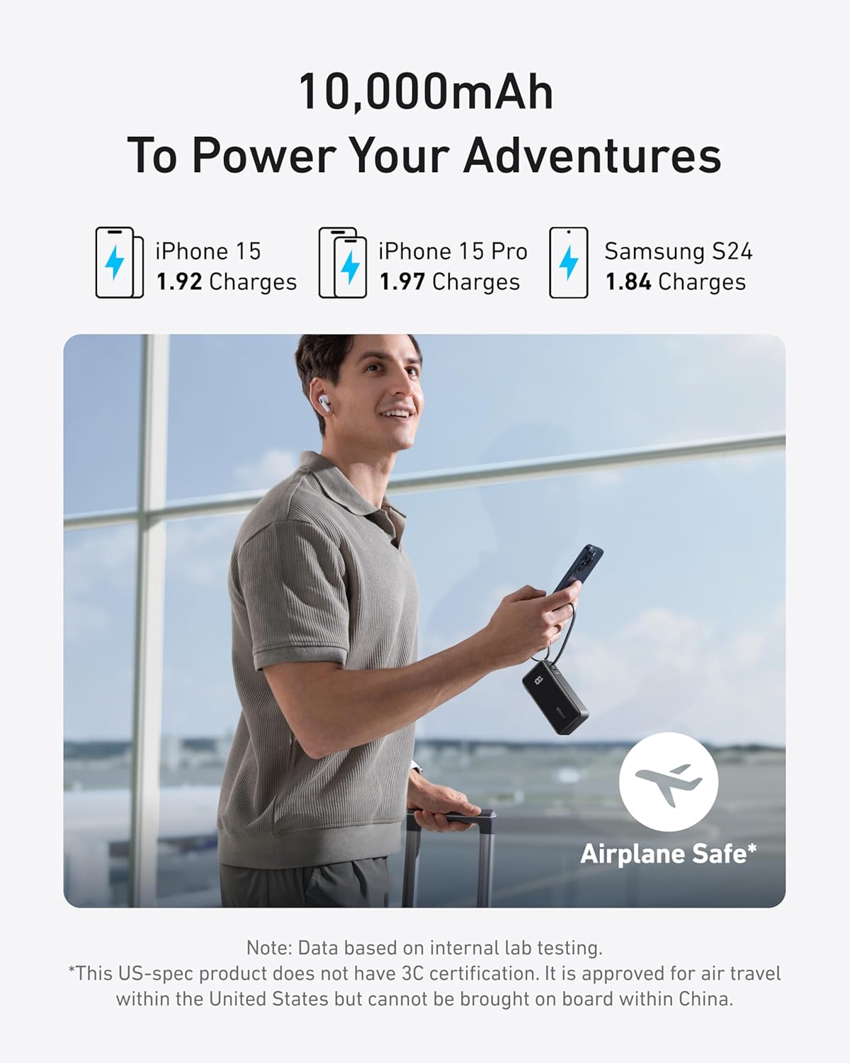 Stay Powered Wherever: Perfect for short trips, with dimensions of only 4.25 × 2.01 × 1.22″ and a weight of about 8.82 oz. Charge an iPhone 15 Pro up to 1.97 times or a Samsung S23 up to 1.84 times.