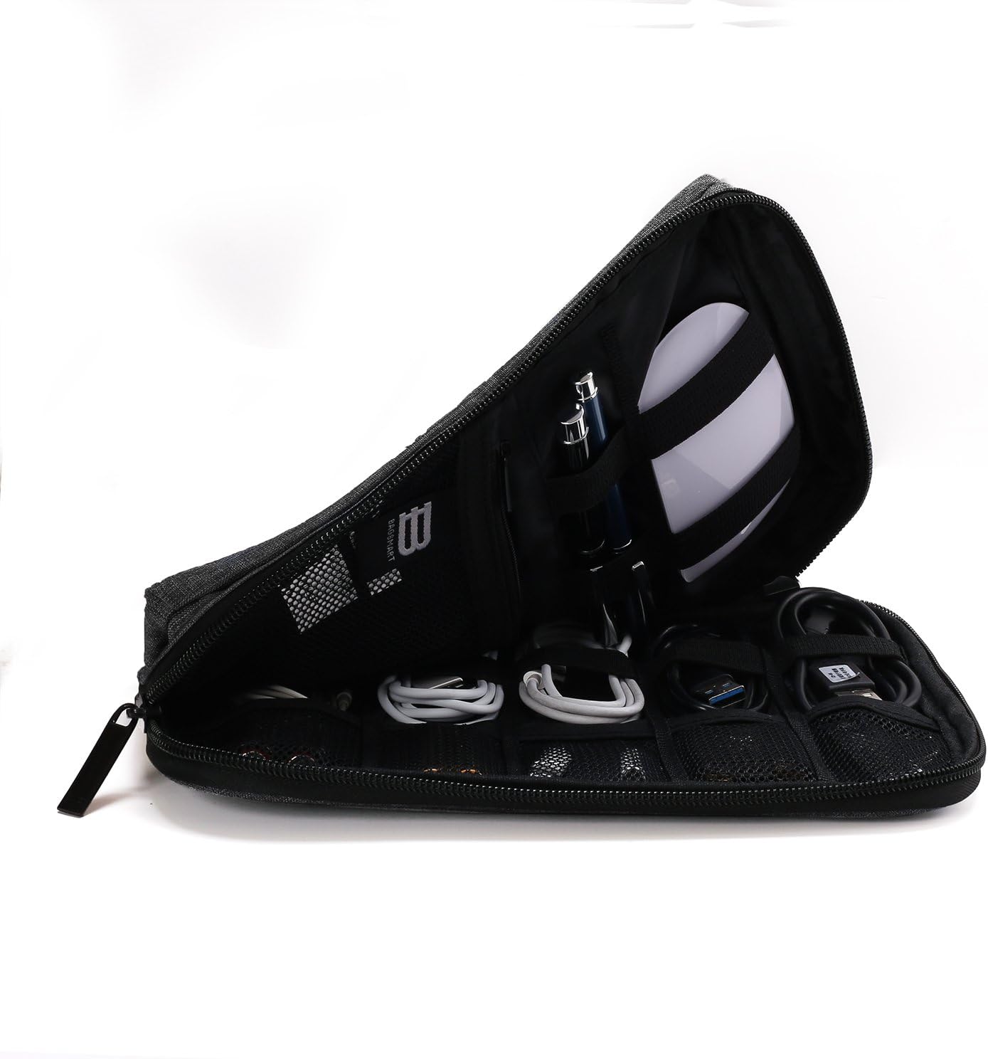 Compact Size: The electronics organizer bag is 9.4″ L x 6.7″ W x 1.4″ H and weighs 0.24 lb, making it a lightweight and space-saving option for travel.