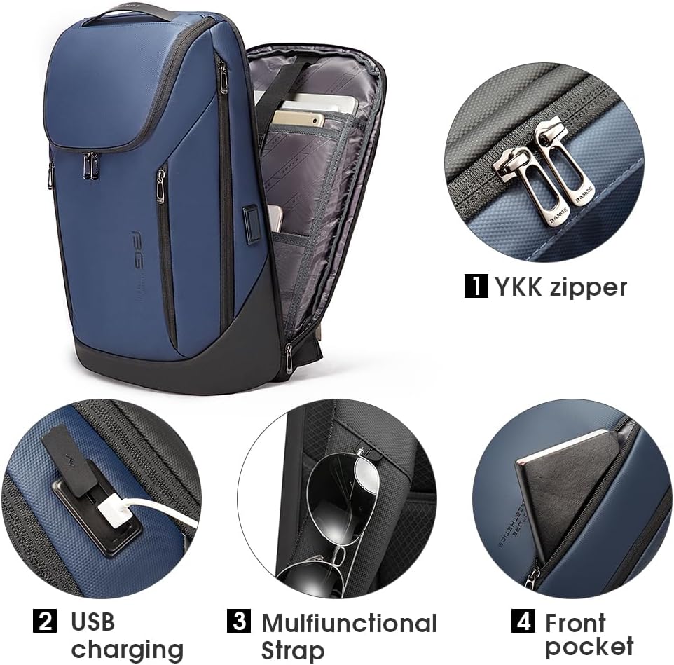 The BANGE business smart backpack can hole 15.6 inch laptop backpack,180°opening pocket for your laptop easily extract and is strong, all-purpose backpack with enough capacity for business, overnight or weekend trip, it will hold your personal items all. It’s built with long-lasting, ultra durable water resistant oxford, your belongings will be protected from the elements. The full zip opening allows for easy packing with loads of capacity. Constructed with durable and water-resistant fabric padding. Center zip fully opens for ease of packing multiple compartments .Multiple external straps handle for easy handling.added shoulder straps provide comfort while carrying.Multiple zippered quick access stash pockets.Elastic side pocket perfect for water bottle storage.