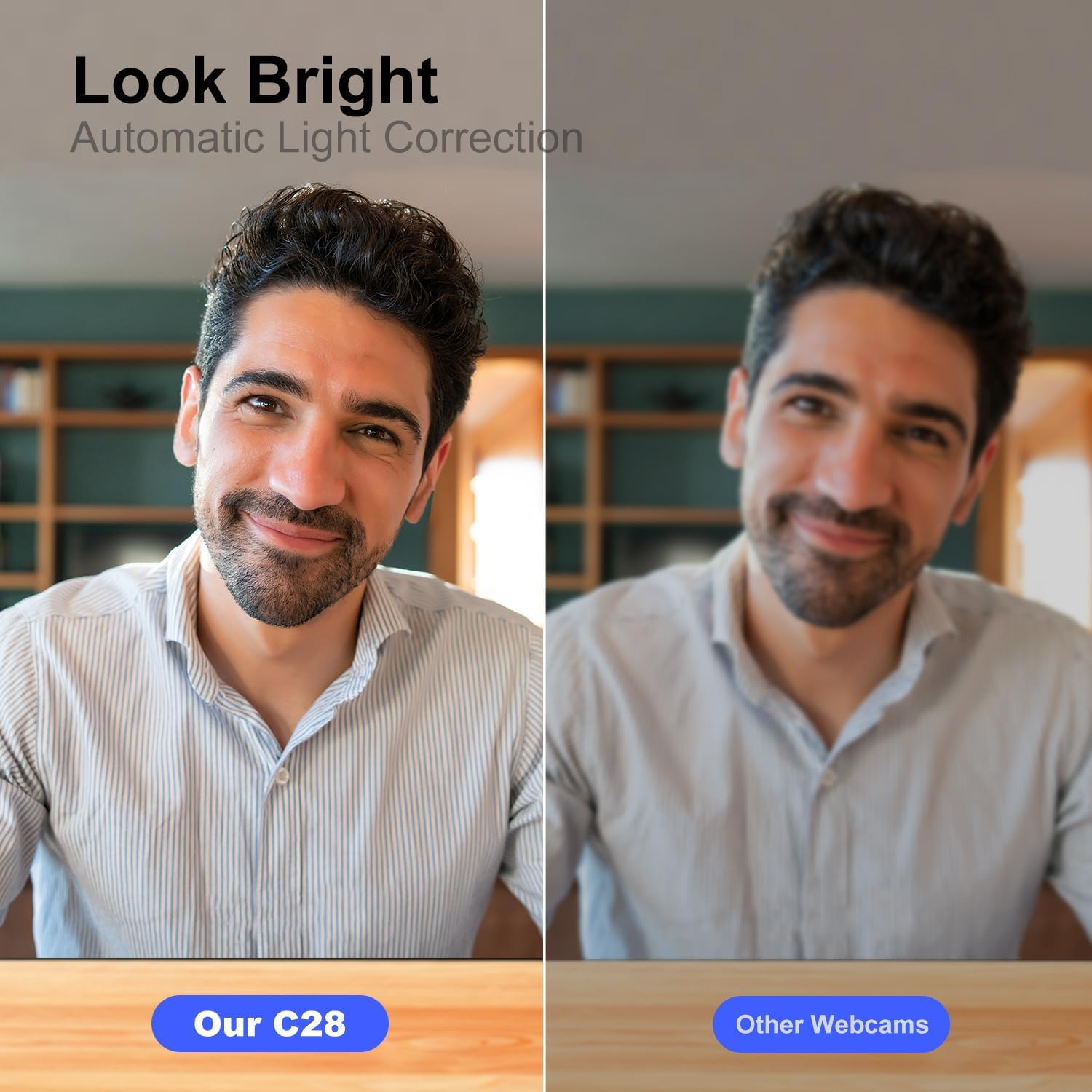 【Full HD 1080P Webcam】C28 web camera provides design and Optimization for professional video streaming. Realistic 1920 x 1080p video, 6-layer anti-glare lens, providing smooth video