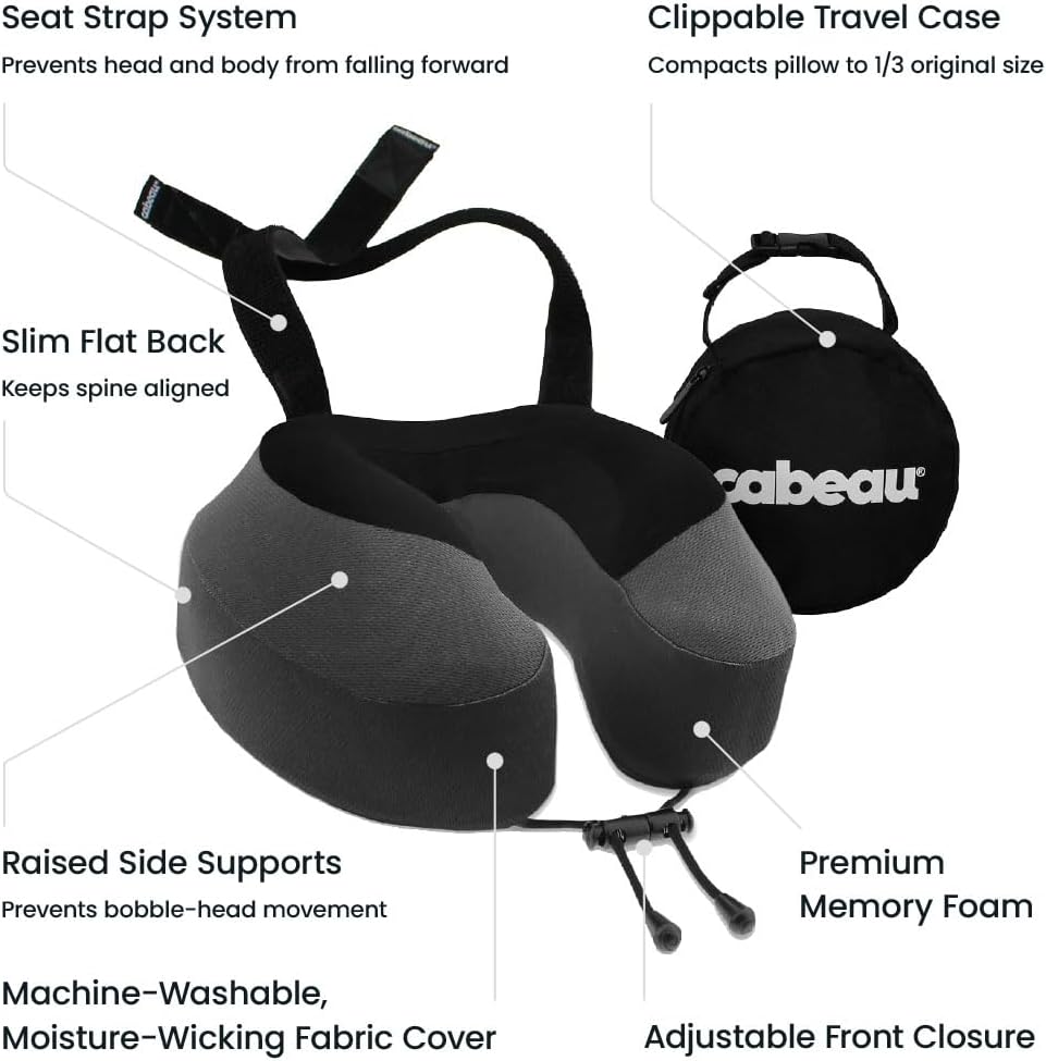 Cabeau’s unique high-profile sides cradle the head and neck for 360-degree support