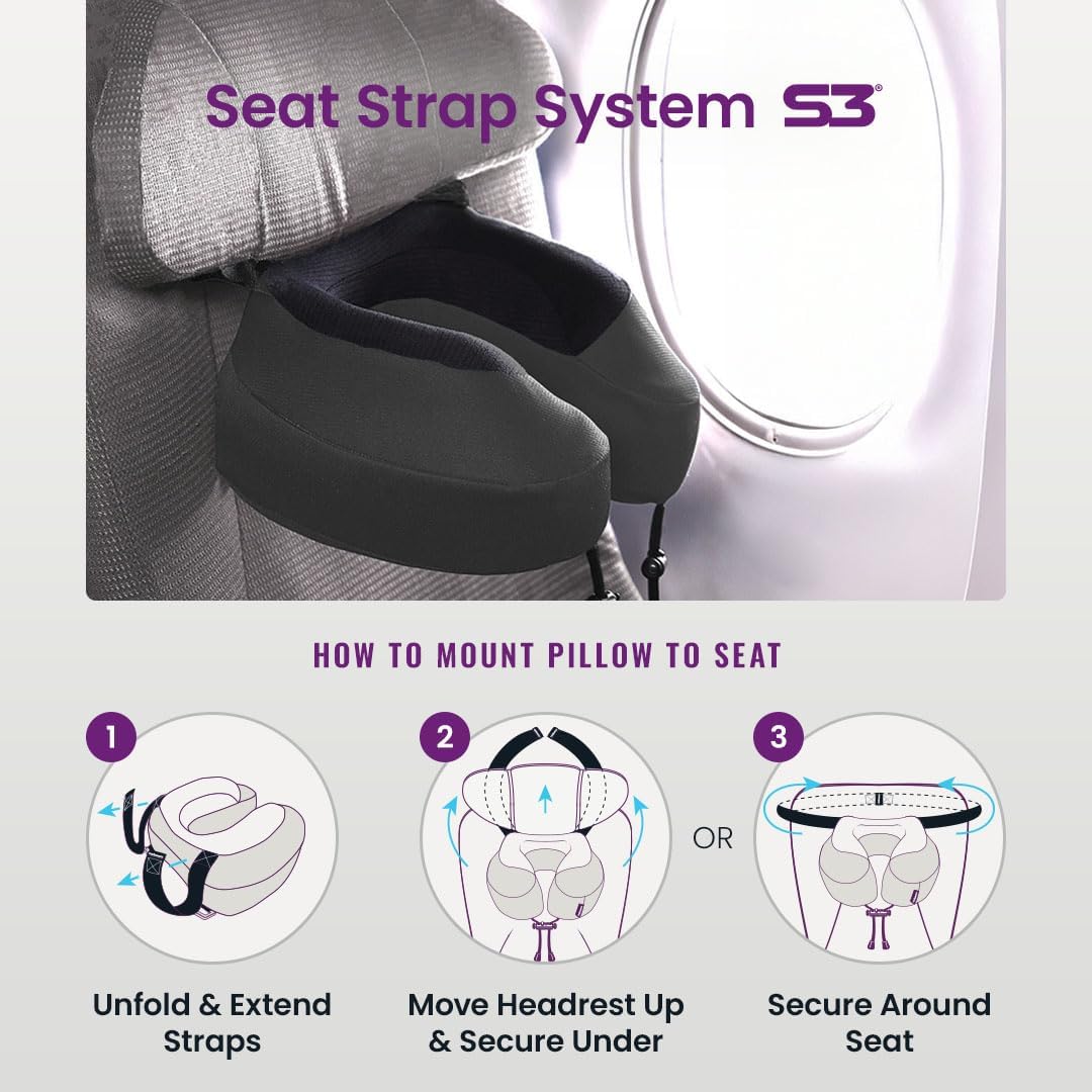 EXCLUSIVE PATENTED SEAT STRAPS – Attach our neck pillow for travel to ANY chair, including airplane seats or office chairs to prevent slouching or falling forward, keeping head and spine in perfect alignment for ultimate comfort and support.
