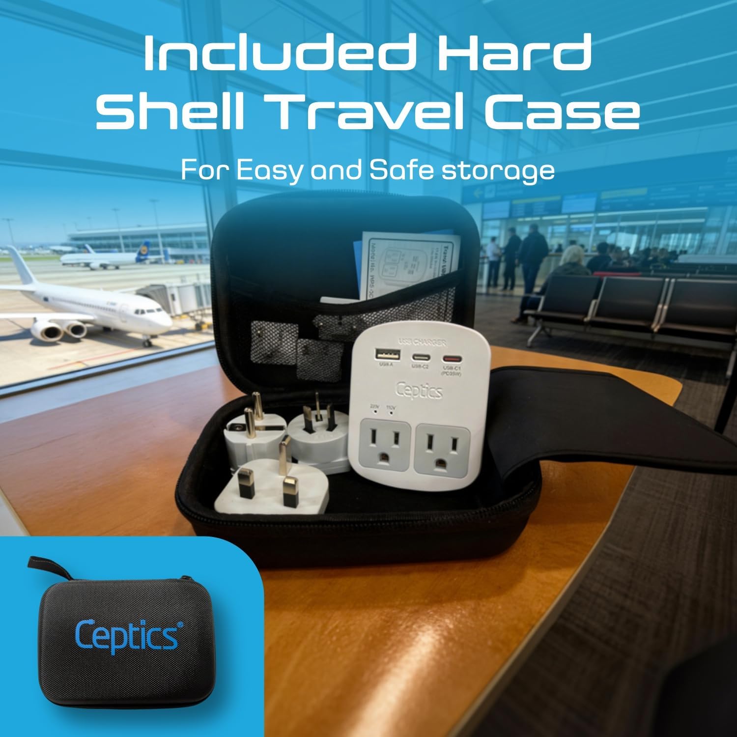 International Power Adapter:Equipped with 2 USA outlets, 1x USB-A (3A), 1x USB-C and 1x PD 35W USB-C and USB-C cable-Perfect for travel – use with cell phones, laptops & other devices anywhere in the world – Few Exceptions Listed below.