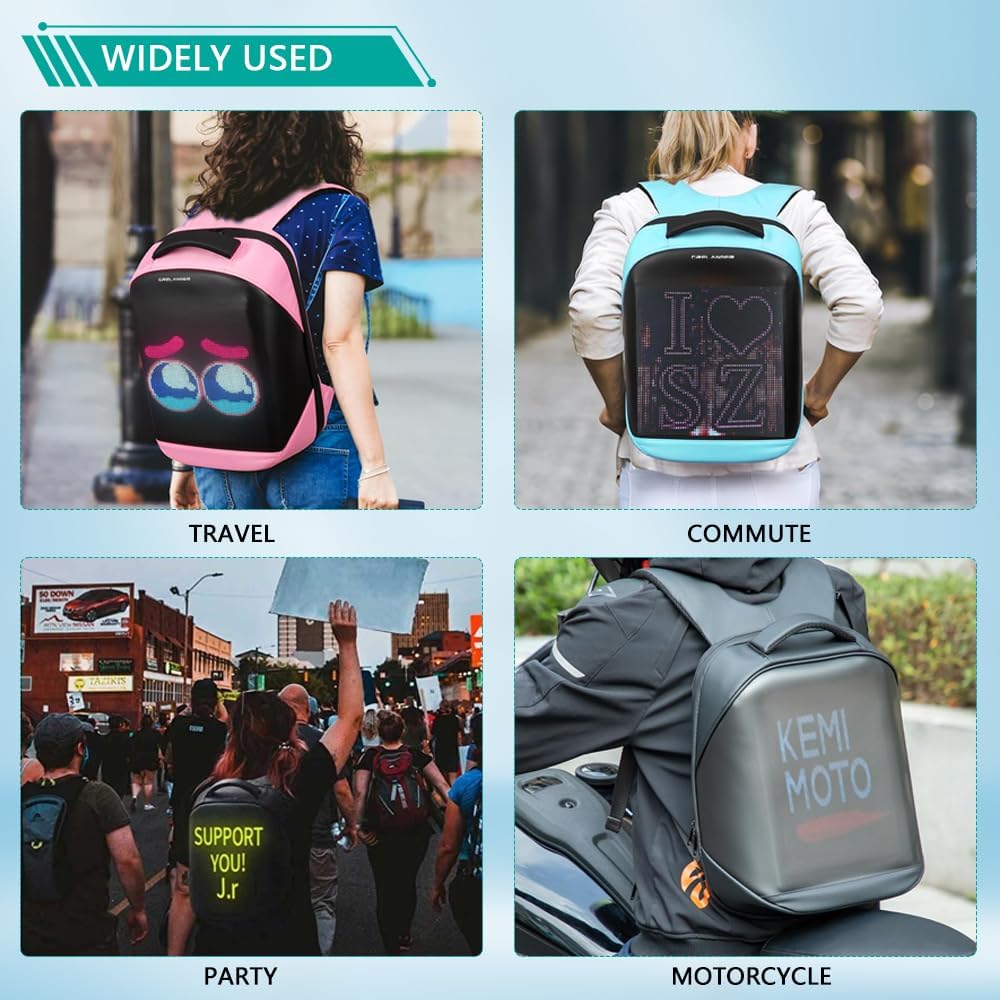 【Multiple Use Occasions】: Ideal for various occasions, this programmable backpack is great for advertising, travel, work, holidays, and hiking, making your LED backpack a standout accessory for visibility and fun