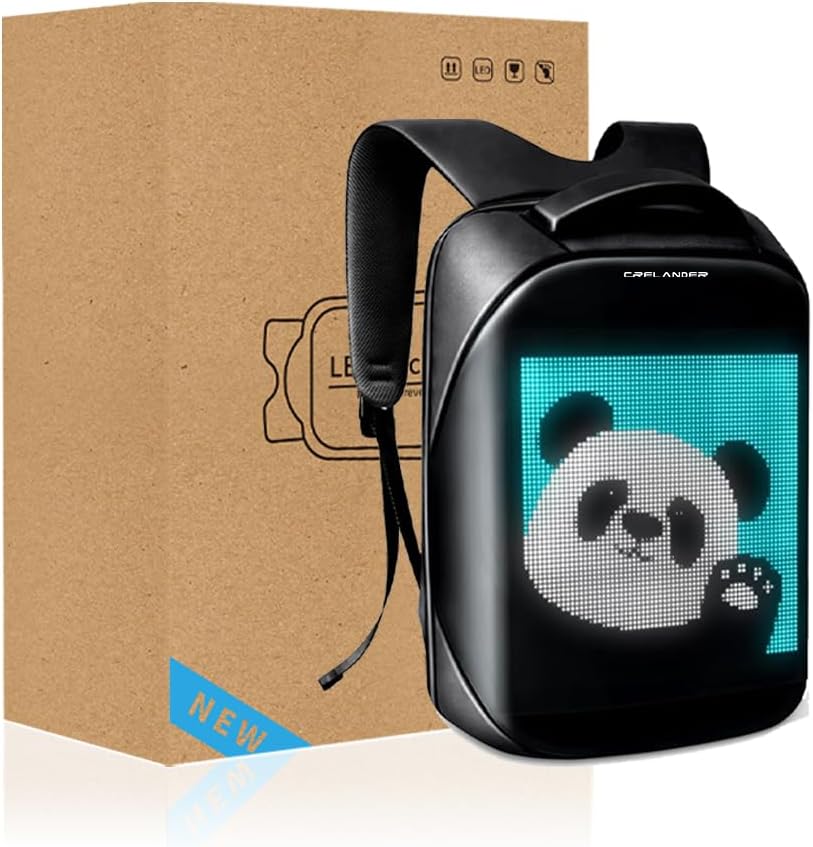 【Programmable LED Display】: This LED backpack features a full-color 64×64 dot matrix screen that you can program with your own pictures and GIFs via the mobile APP, perfect for creative expression and customization