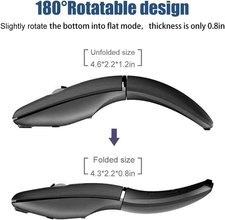 Ergonomic Mouse: Fits hands curve, arc design. Takes small space after rotate, lightweight and mini (size: 4.6″*2.3″*0.3″) compact design occupies less space of your desk. A perfect fit for your hand and your mobile lifestyle