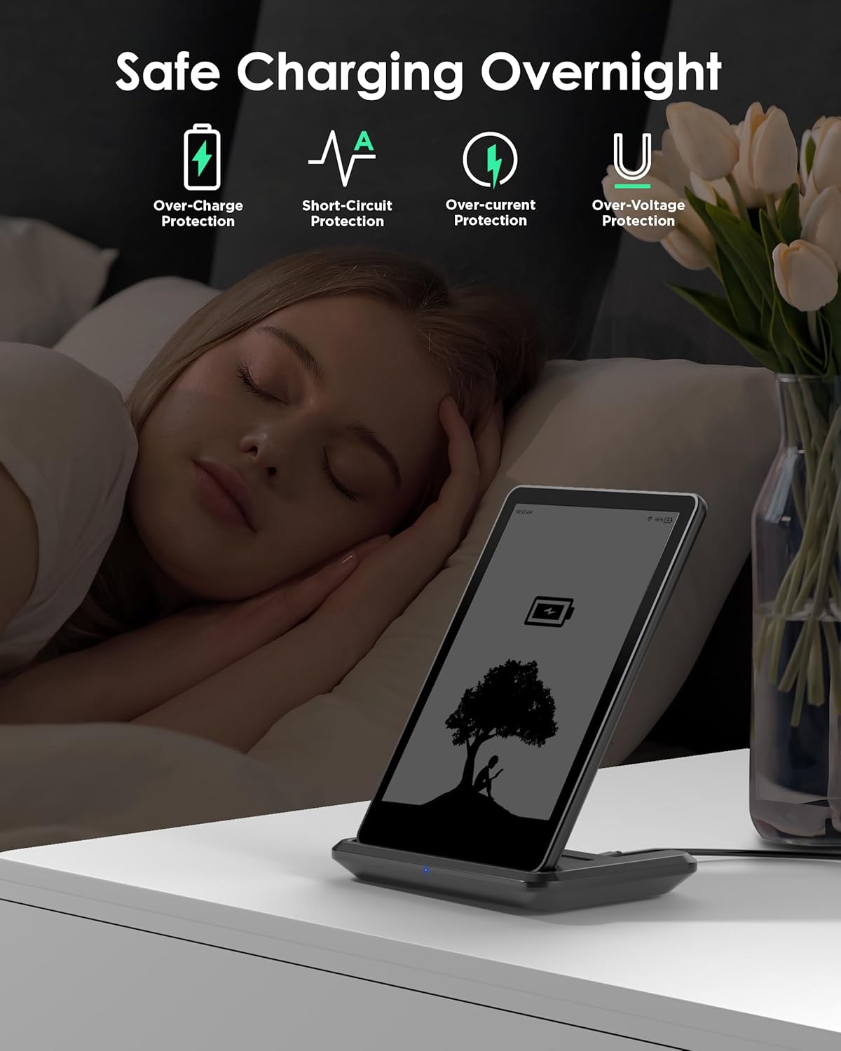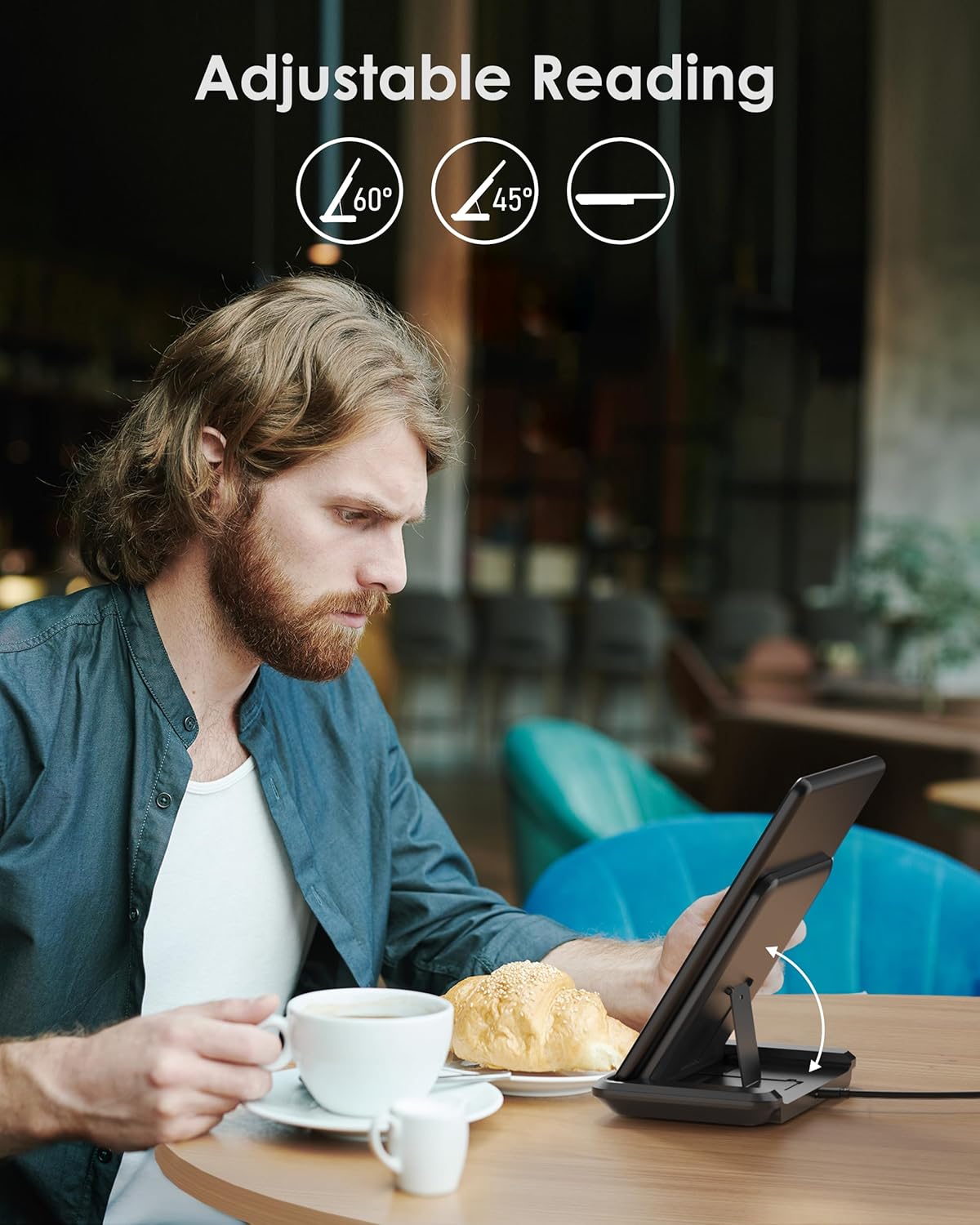 【Adjustable Reading Angle】 The wireless charger can be adjusted to 3 different angles. You can choose an angle that best suits your reading. Continuous wireless charging allows you to have no power anxiety.