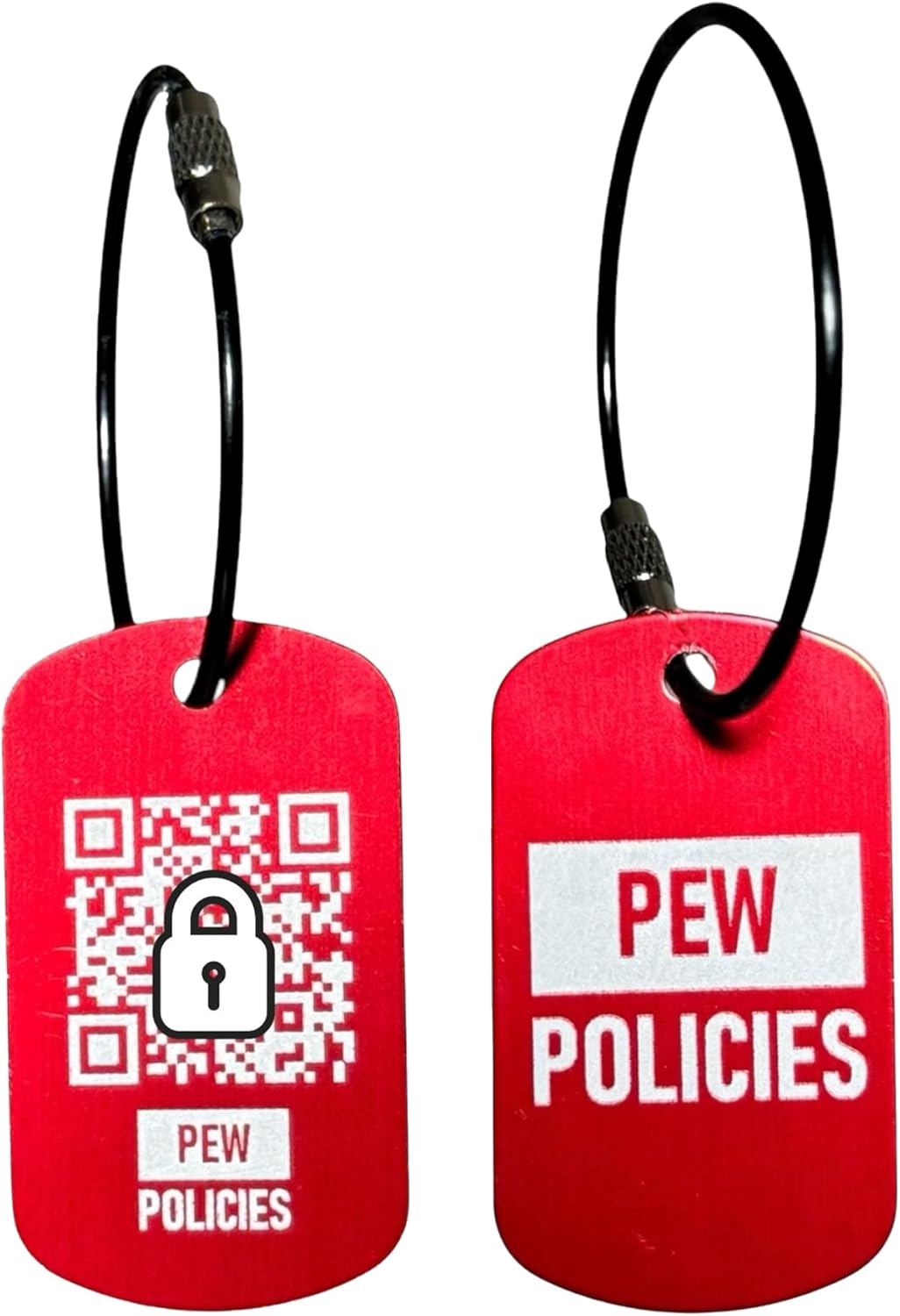 Simplify your firearm travel preparations with Pew Policies Luggage Tags. Each tag features codes linking to up-to-date airline, TSA, and state reciprocity policies, ensuring you’re always informed.