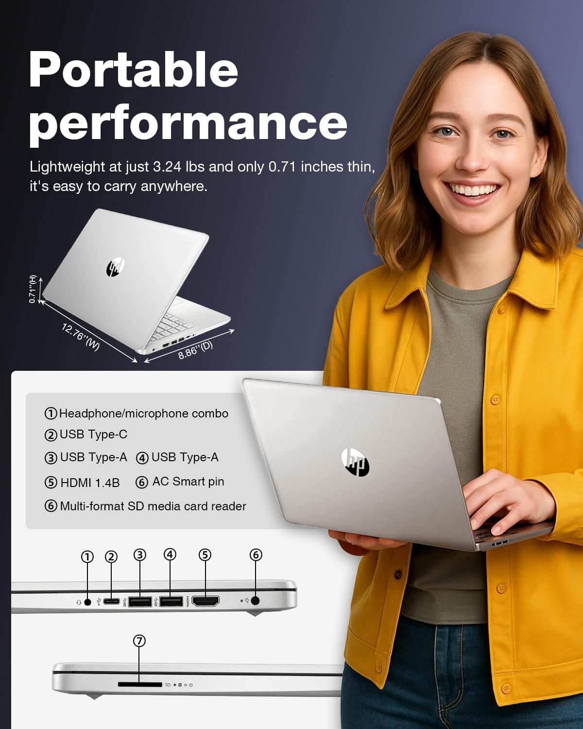 💻Sleek and Portable Design – The HP 2025 Laptop is designed to be ultra-portable, weighing just 3.24 lbs and measuring only 0.71 inches in thickness. This thin and light laptop is perfect for students and business professionals on the go. Its 14-inch HD anti-glare display allows you to enjoy clear visuals and work comfortably, even outdoors.