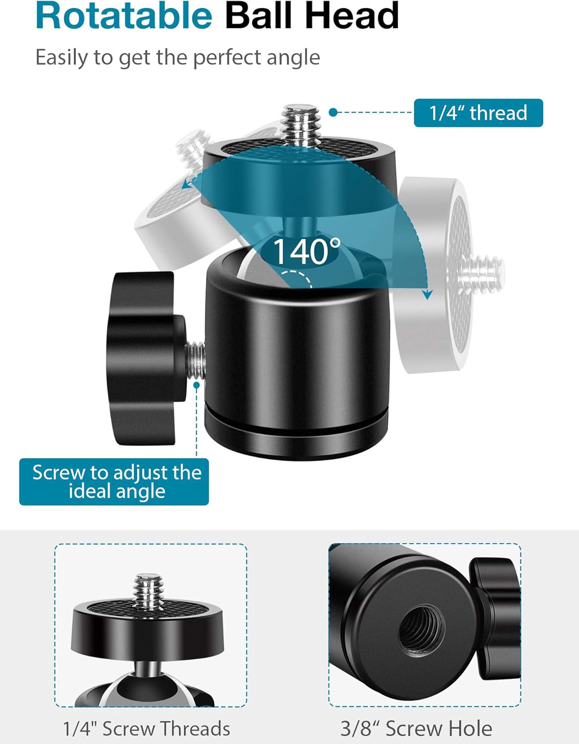 Exceptional Compatibility: Featuring a swivel ball head with 360° horizontal and 140° vertical rotation, this stand is compatible with a wide range of devices. The 3/8″-1/4″ screw thread fits standard 1/4” screw hole webcams, including models like Logitech Webcam C920, C920S, C922x, C615, BRIO, C930e, C922, C960, and more. It also supports other devices with a 1/4” screw hole, such as ring lights and Tascam recorders.