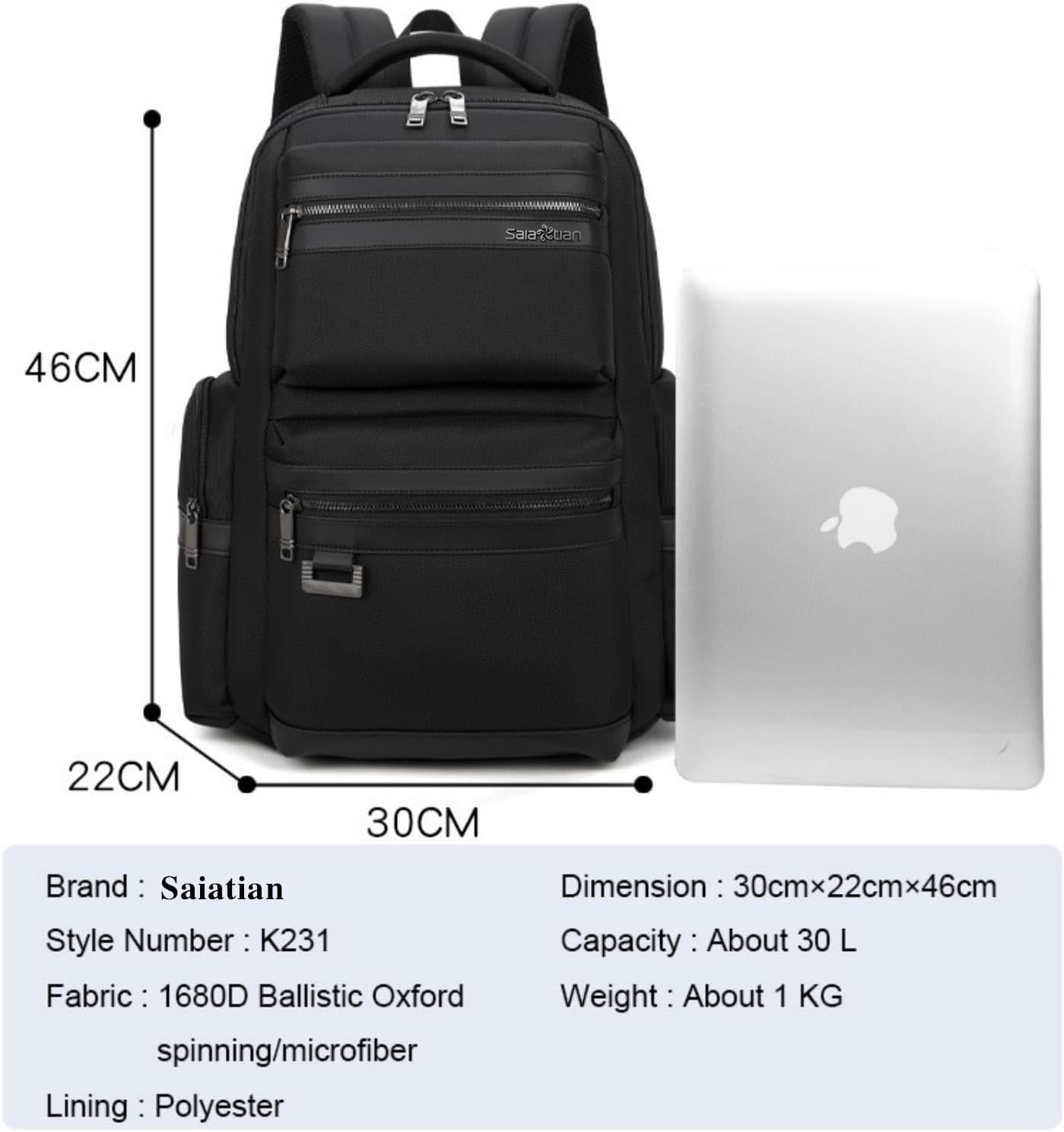 Durable Materials & Solids: made of Oxford spun and polyester, with a metal zipper. Ensure safe and long-lasting use every day and on weekends. The capacity is about 30L and the weight is about 1KG.