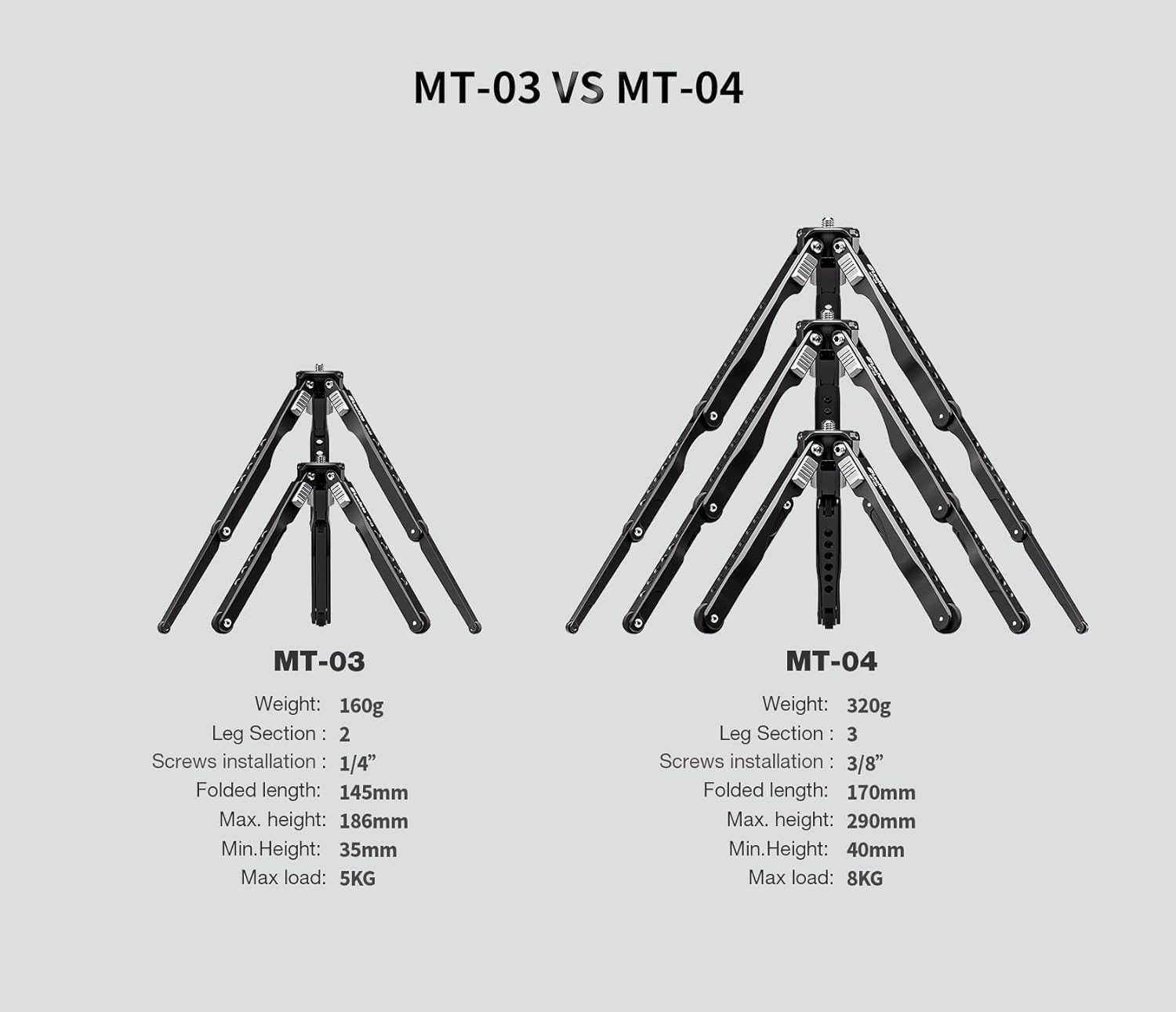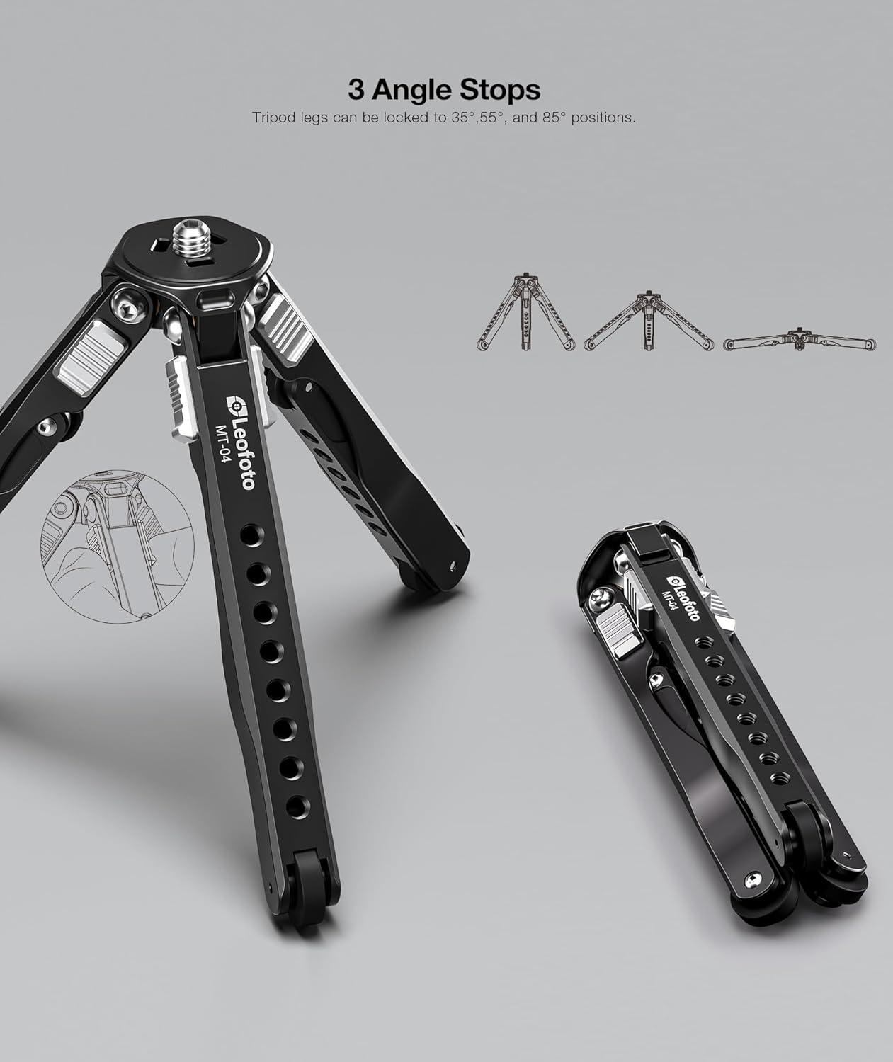 Three Angle Stops: MT-04 Tripod legs can be locked to 35° 55°,85° positions