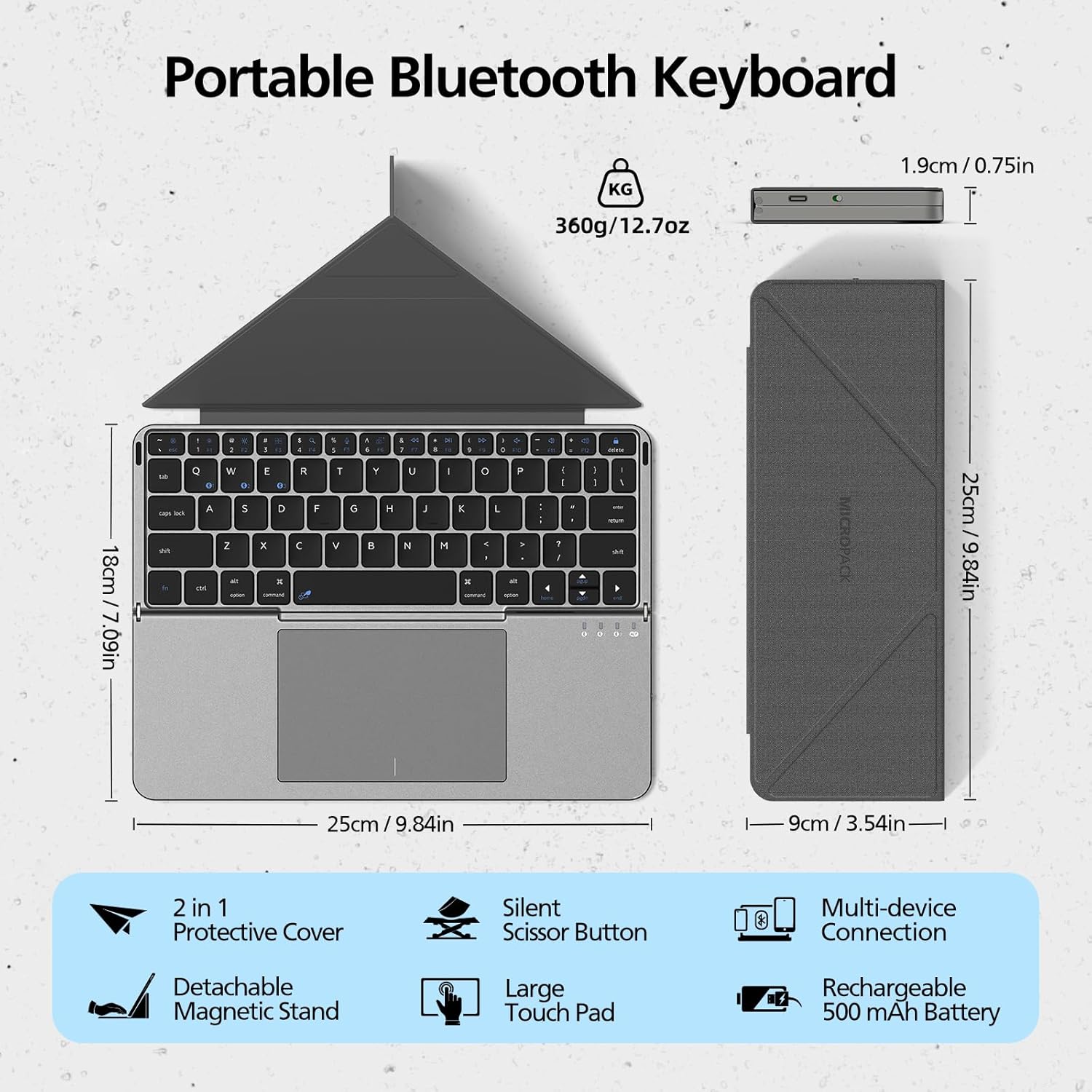 4️⃣Long-Lasting USB-C Rechargeable Battery – The 500mAh battery provides up to 80 hours of continuous use (30 days standby) on a single 2-hour USB-C charge. Complete package includes keyboard, magnetic PU case and charging cable – everything you need for productive mobile computing.
