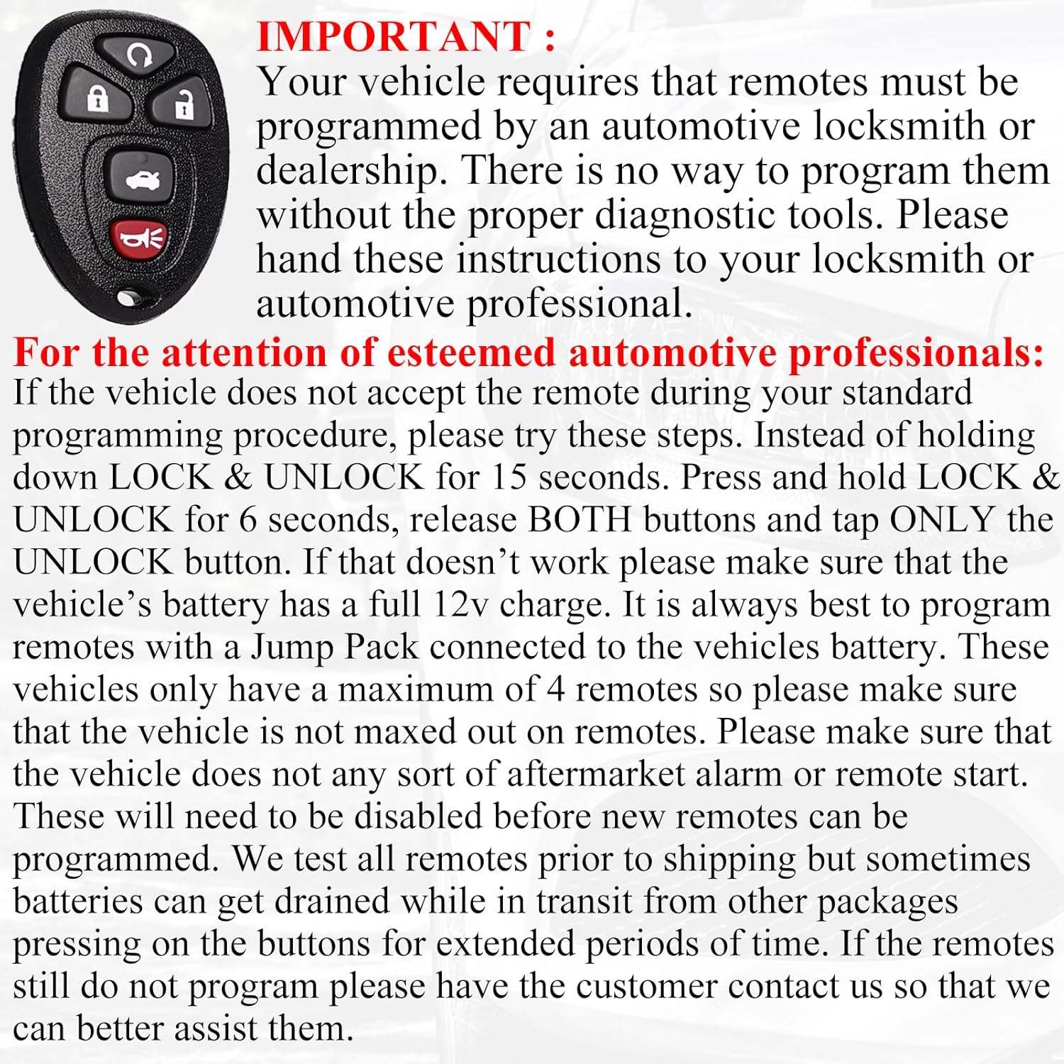 PROGRAMMING: Self-Programming Is Not Available for This Key Fob. It Requires Qualified Locksmiths or Dealership to Program it.