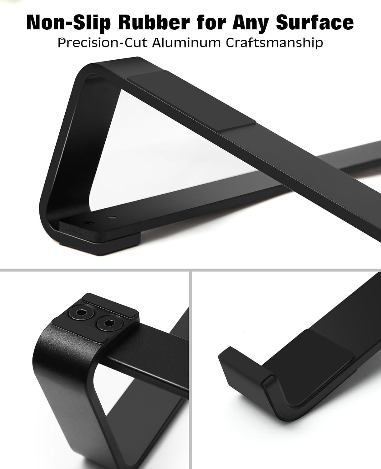 1.Sturdy Aluminum Alloy Laptop Stand: StDiscover the essence of simplicity and strength with our laptop stand. Meticulously crafted from robust aluminum alloy, it ensures unwavering durability while maintaining an elegant, minimalist design. Office essential! Elevate your laptop experience with our tilted ventilated stand, compatible with laptops up to 17/17.3 inches.