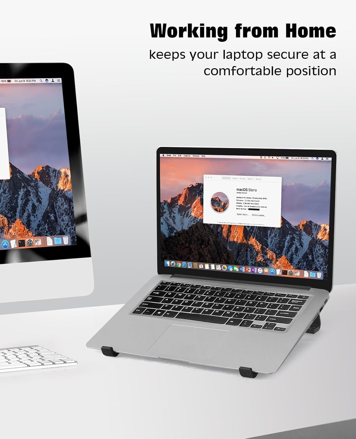 3.Rise laptop to comfortable height : Experience ergonomic excellence with our thoughtfully designed laptop ventilation stand. Elevate your laptop to the perfect height and angle for comfortable typing and optimal viewing. Say goodbye to neck and shoulder pain as you work or watch, thanks to our carefully crafted solution. Laptop stand black for macbook air / DJ/Gaming/Work Form Home