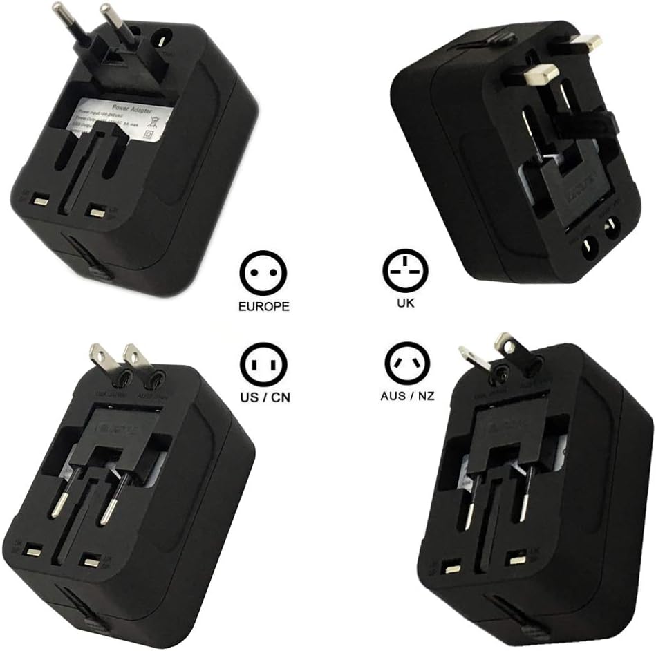 Travel Adapter, Universal Adapter International Power Adapter All in One Universal Adapter Plug with 2.1A Dual USB Charging Ports