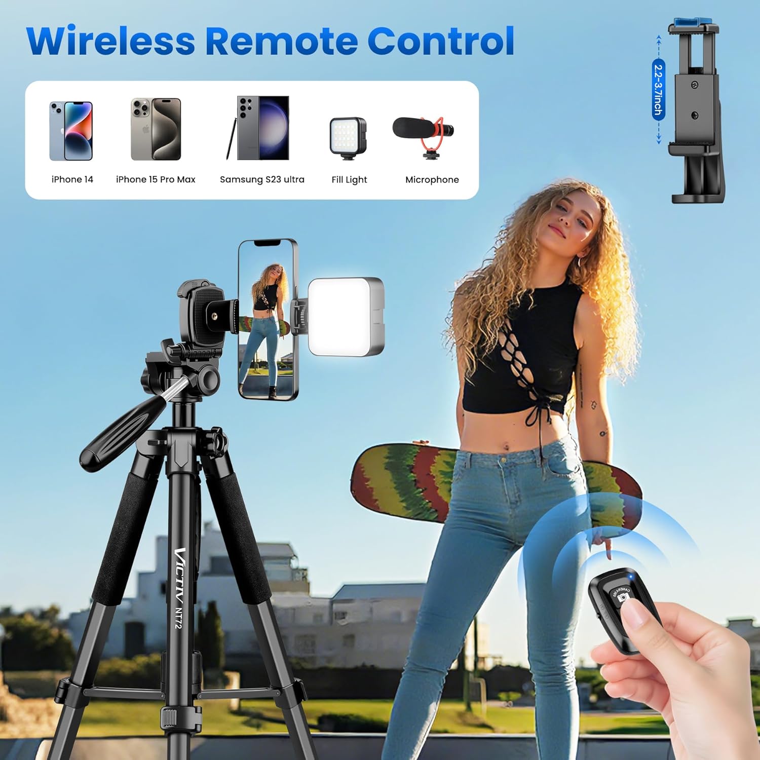 Special designed for you capture smooth and versatile tracking shots whether you’re on the go or at home. Perfect for record videos, photography, Live streaming, taking selfies etc. The tripod head can’t be removed!