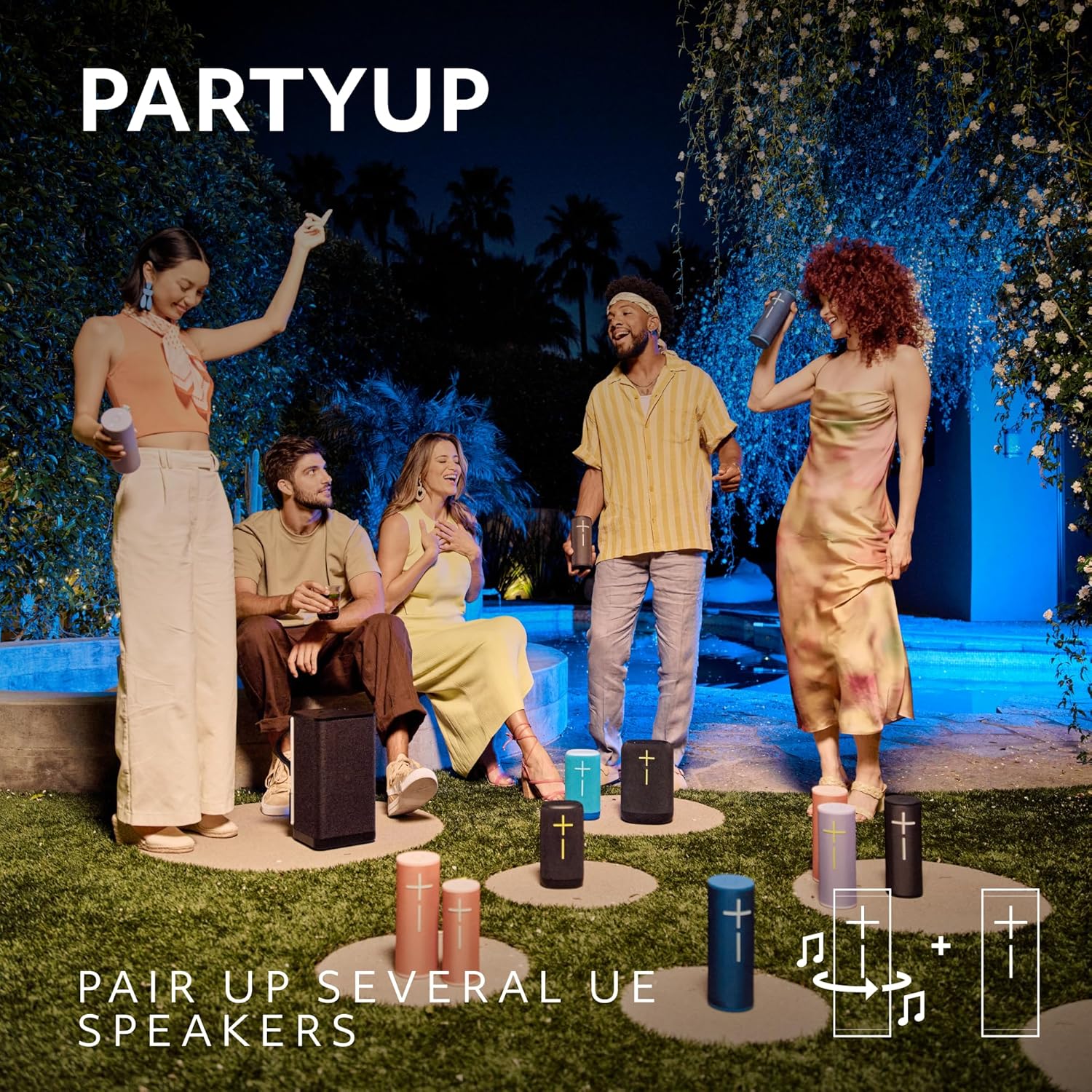 PartyUp: Use PartyUp on the Ultimate Ears BOOM app to pair several portable Bluetooth speakers like BOOM, MEGABOOM, EVERBOOM, EPICBOOM, and HYPERBOOM, creating a surround sound experience with Bluetooth speakers