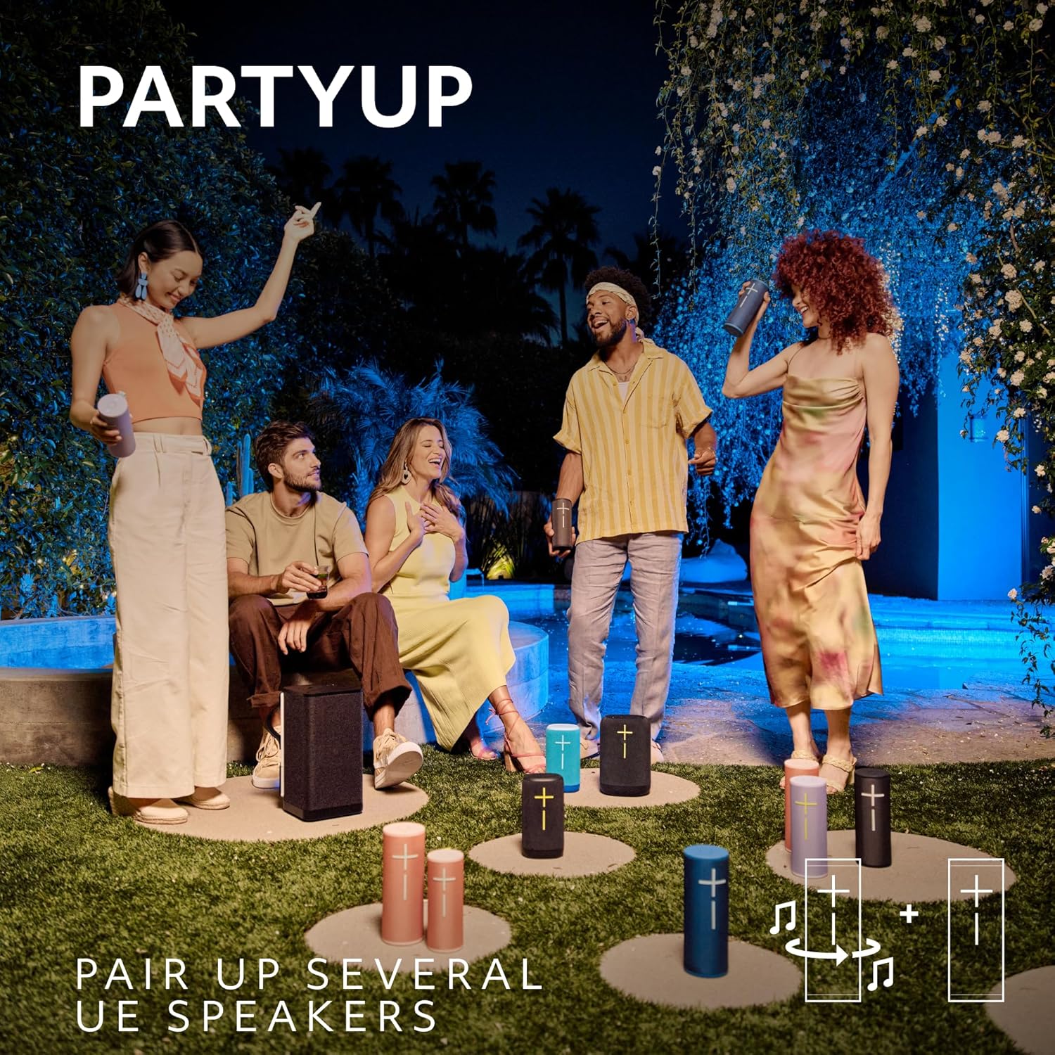 PartyUp: Use PartyUp on the Ultimate Ears BOOM app to pair several portable Bluetooth speakers like BOOM, MEGABOOM, EVERBOOM, EPICBOOM, and HYPERBOOM, creating a surround sound experience with Bluetooth speakers
