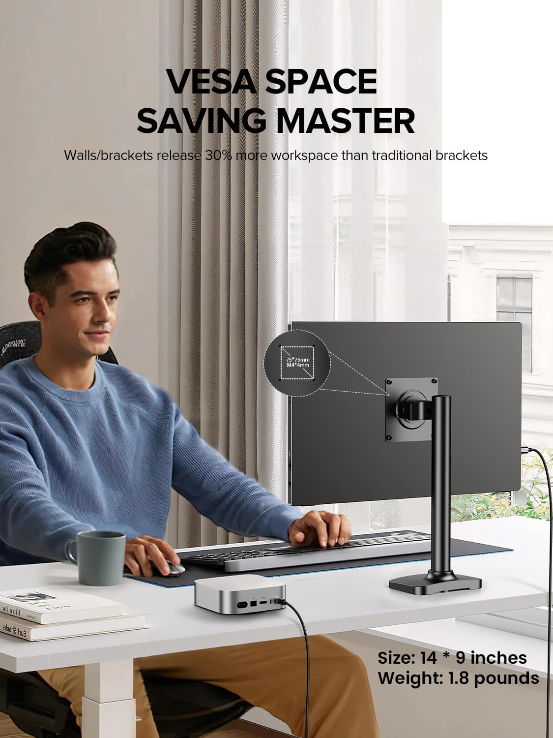 Smart Cover&VESA Installable: The Smart Cover is made of durable PU leather casing and soft lining to protect the safety of your travel monitor. Built in VESA( 75×75@M4 )On the back of the monitor, it can be installed on the wall or desktop(Monitor size 14 * 9 inches, weight 1.8 pounds)