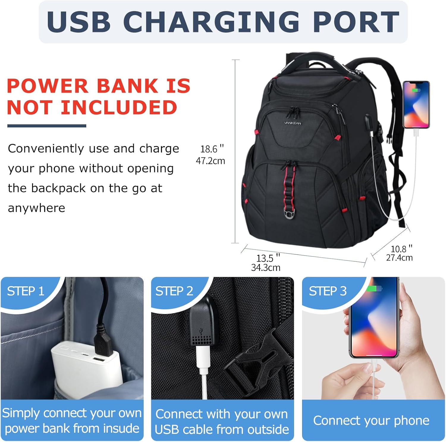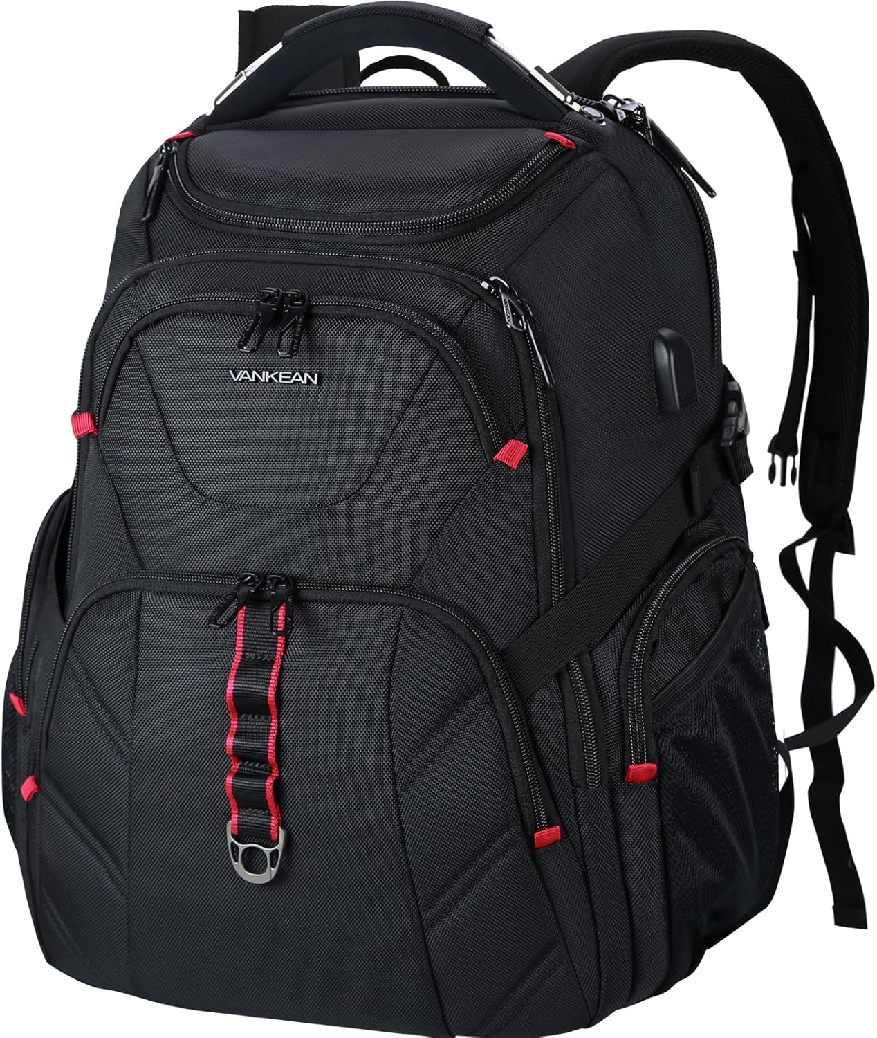 DIMENSION & HIGH QUALITY MATERIAL:VANKEAN Heavy Duty laptop backpack is made of high-quality water-repellent ballistic nylon fabric with hard shell saferoom ; Dimensions: 18.6”x13.5”x10.8”, fits up to 17.3” laptop; Weight: 3.08LBS