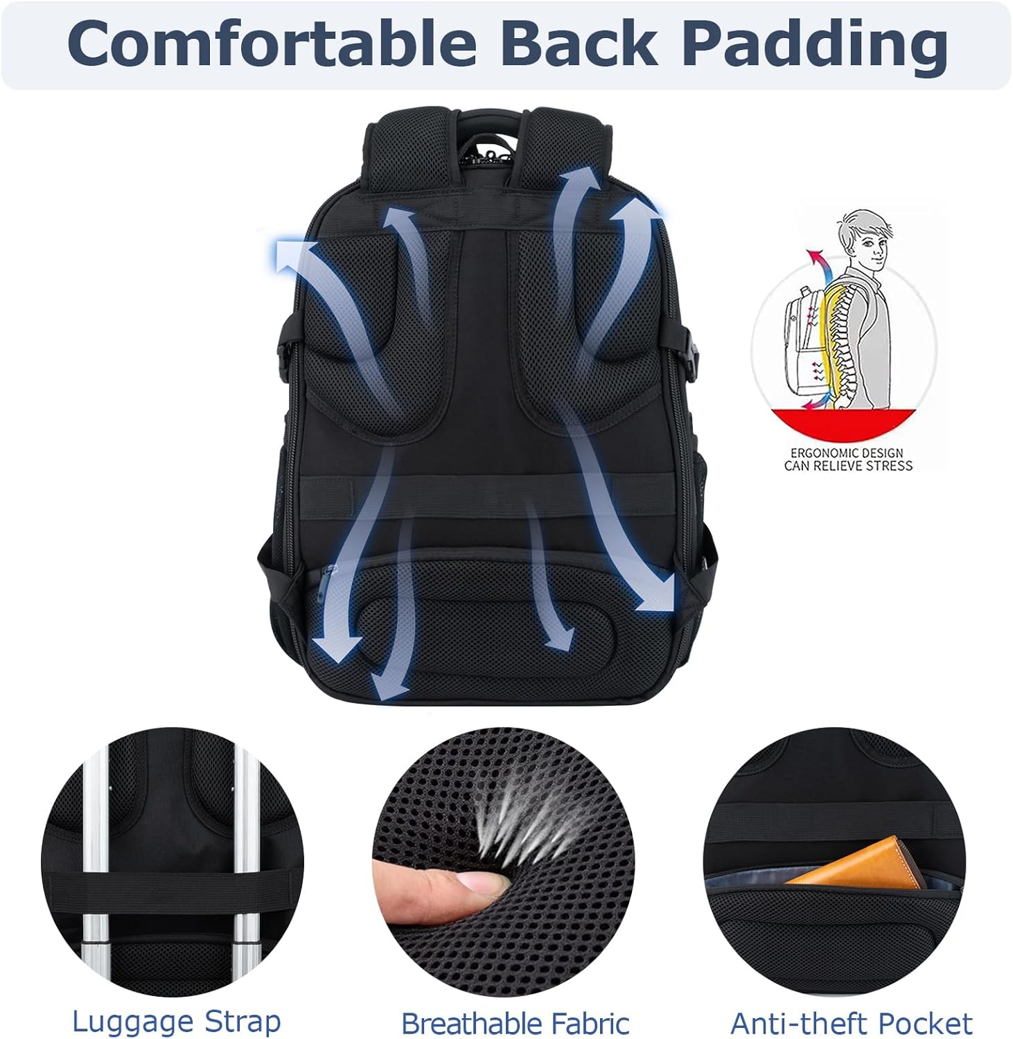 DURABLE & CONVENIENT: VANKEAN practical mens backpack with a sturdy handle with steel cable on the top for carrying, side compression straps keep the exclusive backpack at whatever size you requires. A well-knitted luggage strap is quite convenient for you to fix the laptop bag on the trolley of your luggage, making your journey and travelling more convenient wherever you go.