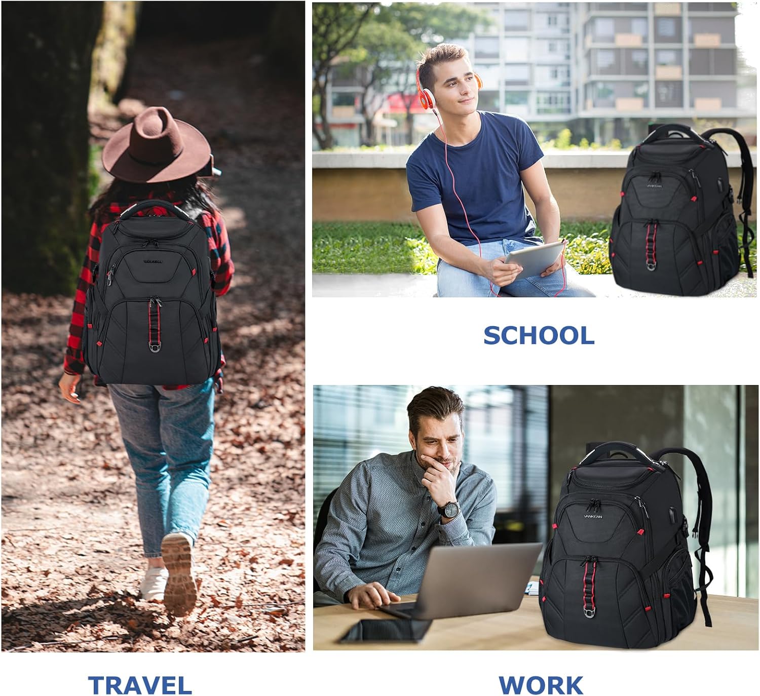 LARGE CAPACITY & MULTI-FUNCTIONAL COMPARTMENT: This large travel backpack with separated compartments and lots of pockets which can provide roomy space for your 17.3” laptop, iPad, power bank, A4 files, wallet, cards, clothes etc. A sunglass hard shell zone is designed on the top which is convenient and safe for you to put your sunglass, cell phone etc.