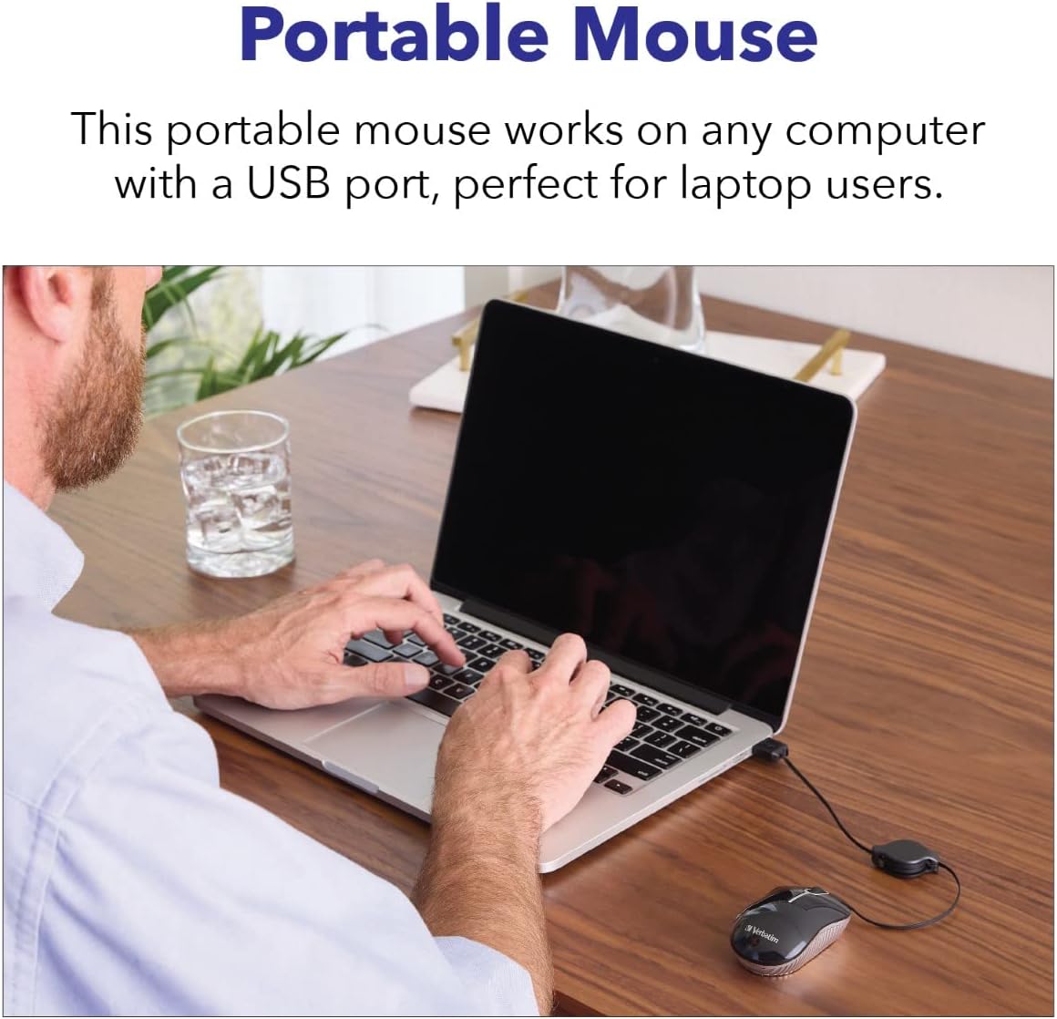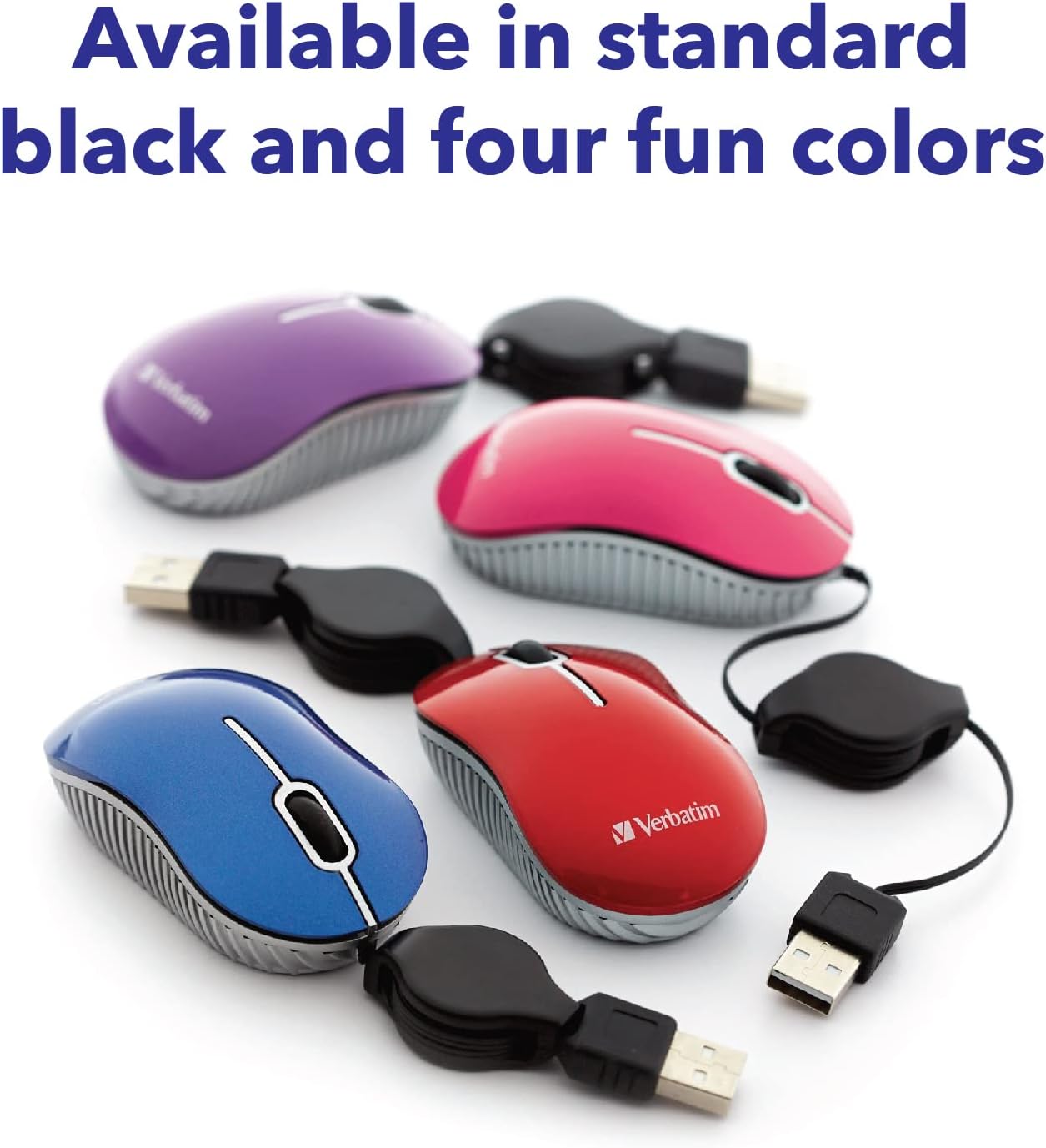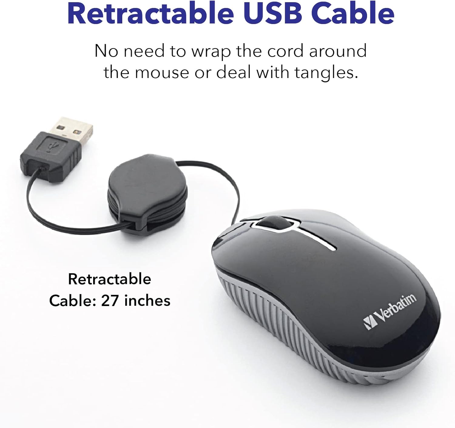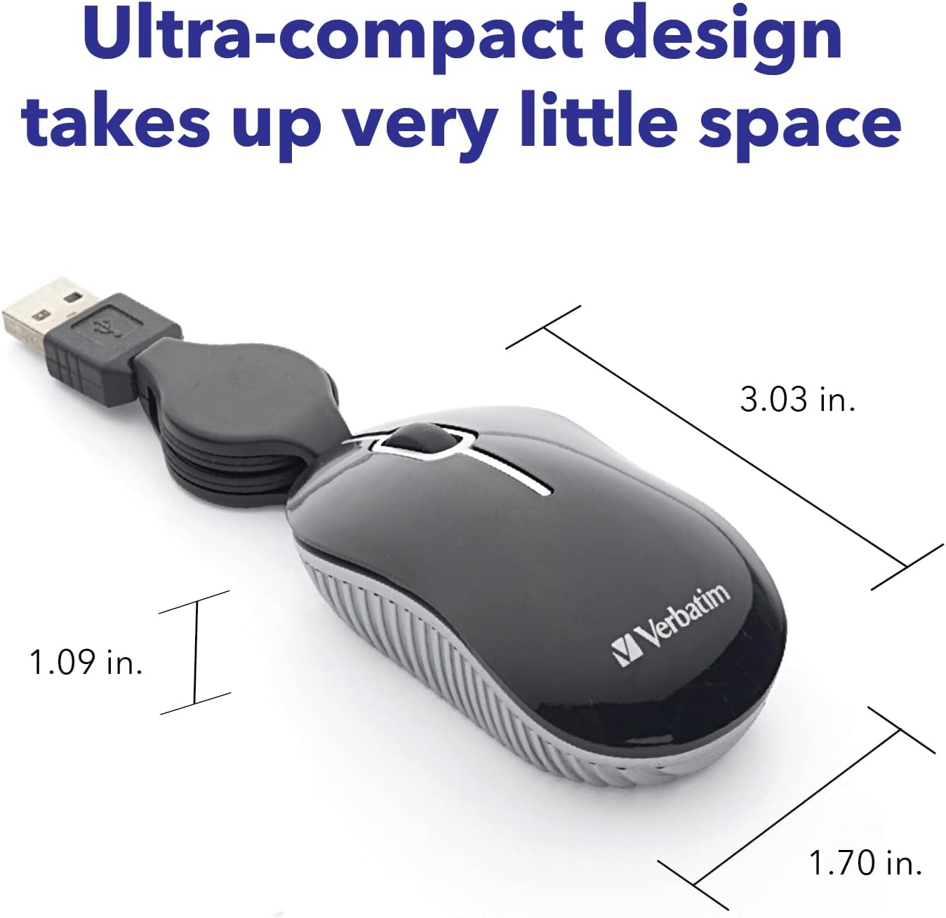 Go Mini – the Verbatim Optical travel mouse is the perfect computer accessory while on the go. The ultra-portable design takes up little space and is perfect for notebook users. No need to wrap the cord around the mouse or deal with tangles; the Optical travel mouse features a convenient retractable USB cable. On a plane or in a car, plug this travel mouse into your USB port and start dragging and dropping files. This portable mouse works on any computer with a USB port.