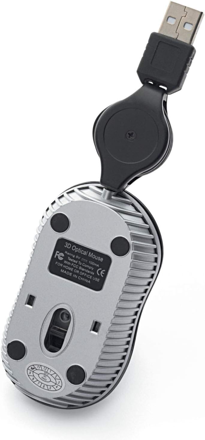 27-inch retractable cable; no need to wrap the cord around the mouse or deal with tangles; to retract the cable pull both ends simultaneously all the way out to trigger the retractor