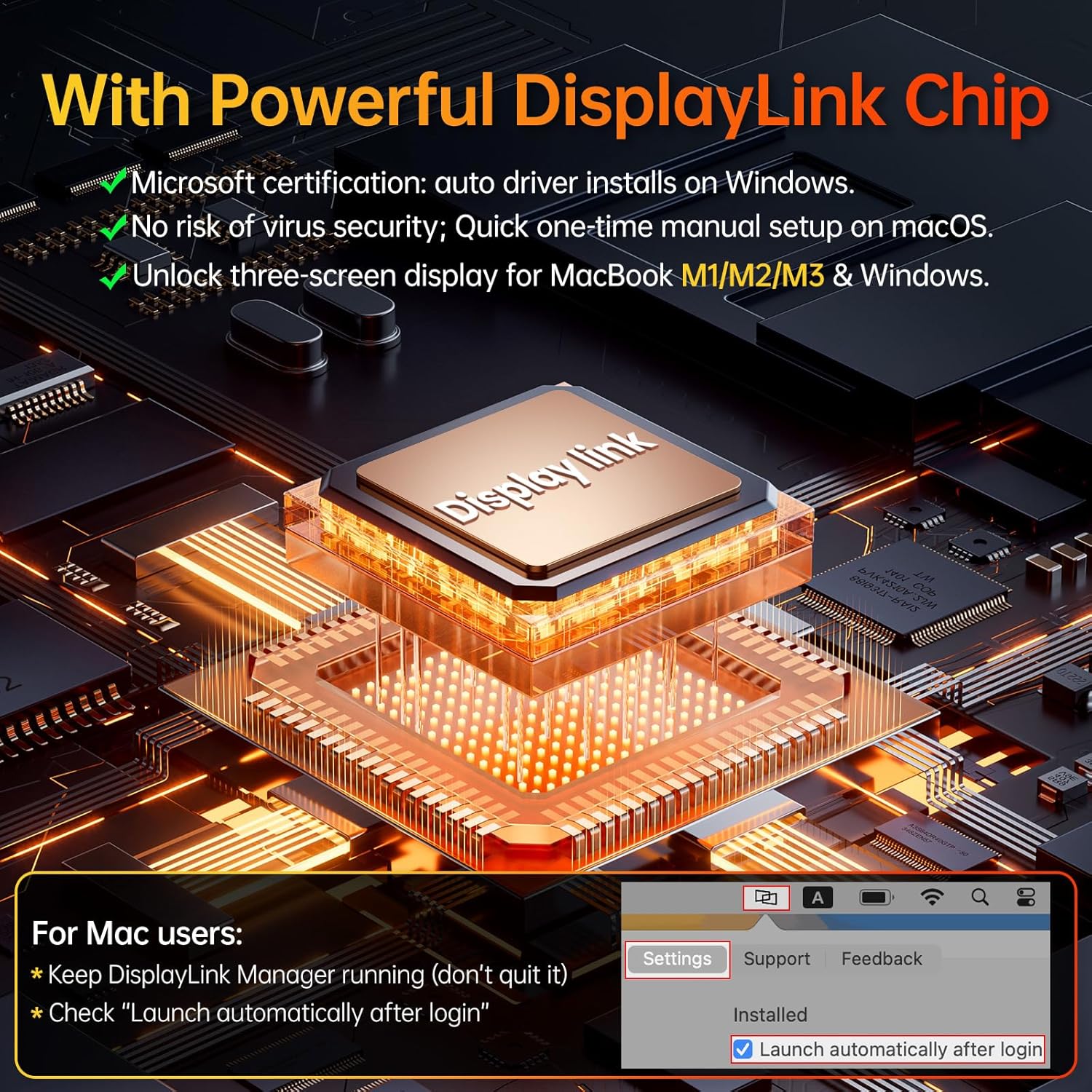 Effortless and Secure Installation: The VisionOwl stacked dual-screen monitor supports quick setup for both Windows and macOS. Windows devices automatically install the Microsoft-certified DisplayLink driver—on Microsoft’s secure whitelist—for a safe, stable, and seamless plug-and-play experience. macOS users can install the official DisplayLink driver easily, with no impact on system security.