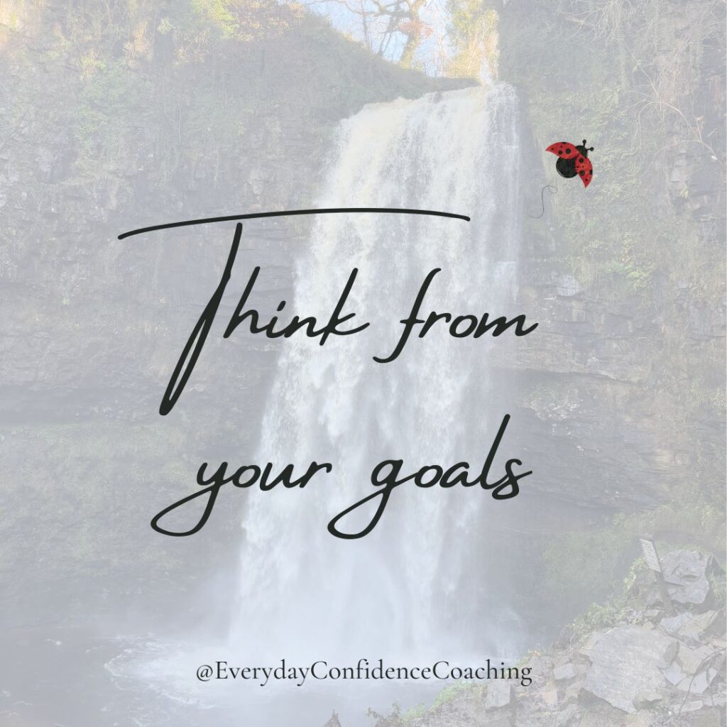 When we choose to think from our goals, each little decision or choice we make each day can be done through the lens of ‘will this get me closer to my goal or further away?’